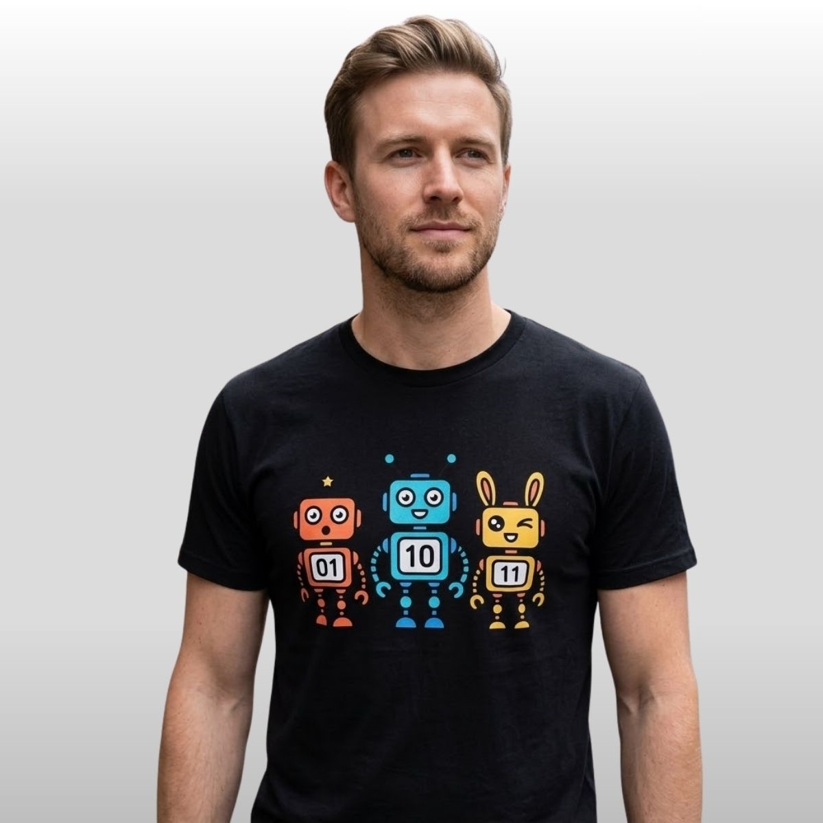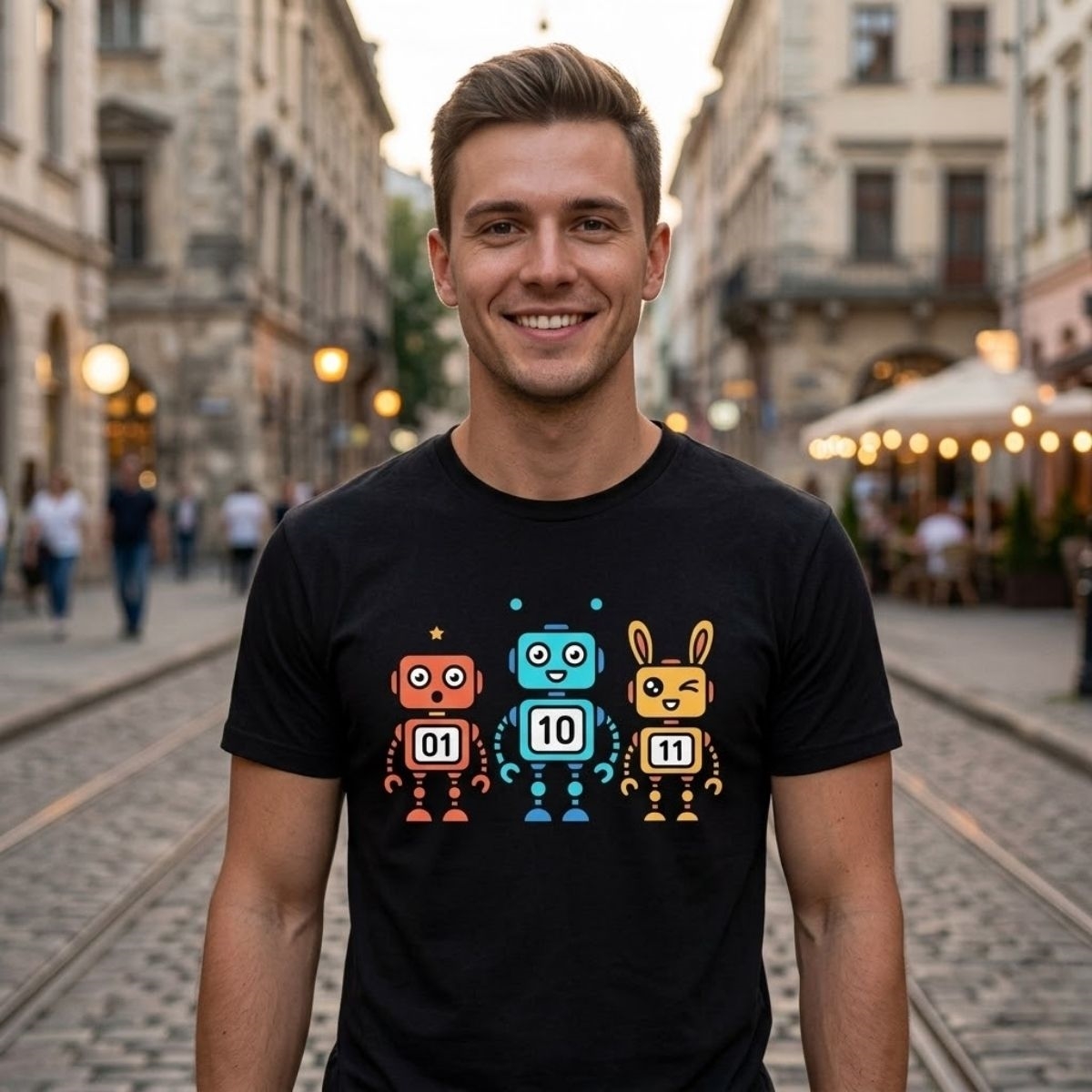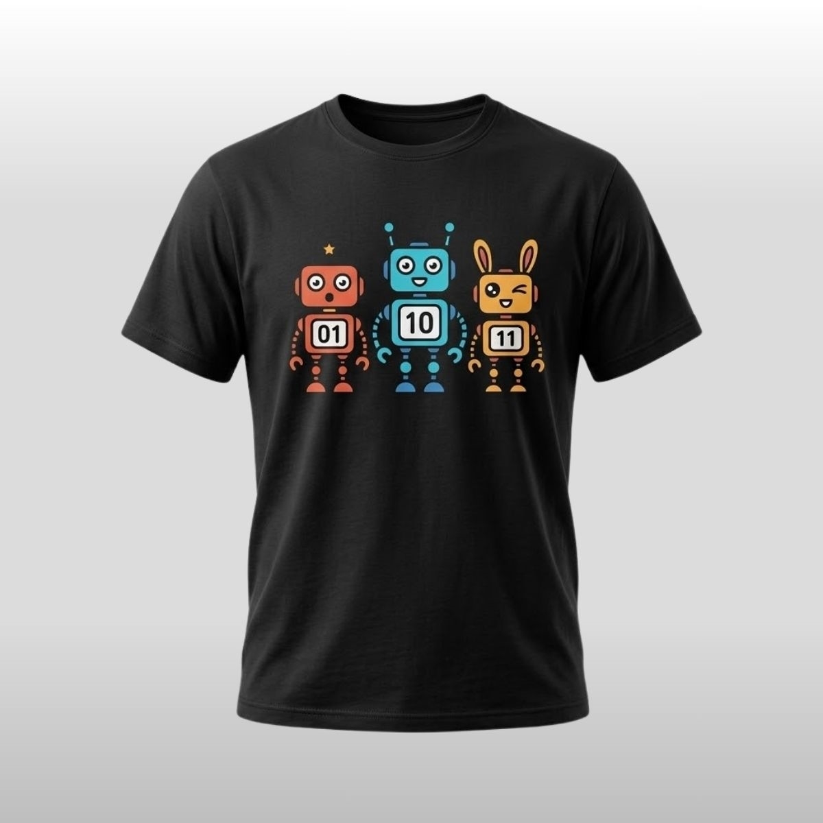 Step into the digital age with a wardrobe piece that speaks the language of machines. The 01 10 11 Robot Shirt is a clever nod to the binary foundations of our modern world, featuring three charming droids that look like they stepped right out of a retro-futuristic laboratory. This design gained massive traction during the 2026 Silicon Valley Tech Expo, where it was spotted on engineers and digital artists alike. Each robot carries a specific numerical panel on its chest—01, 10, and 11—which represents the numbers one, two, and three in binary code. It’s a subtle “if you know, you know” tribute to the evolution of computing, making it a hit for both coding marathons and casual weekend meetups.