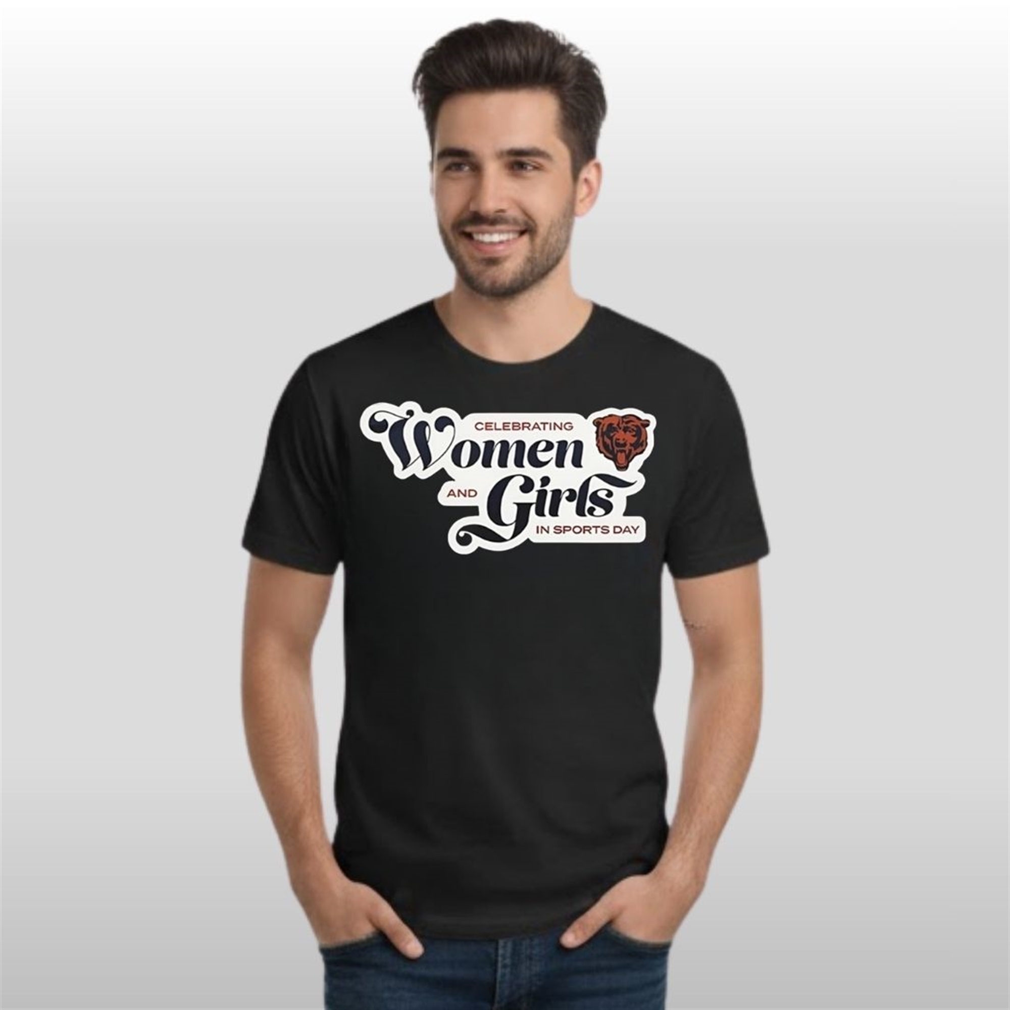 The 2025 Bears Celebrating Women and Girls In Sports Day Shirt is a striking black t-shirt featuring a bold, graphic design. The centerpiece is a stylized, white and navy blue text that reads “CELEBRATING Women and Girls IN SPORTS DAY,” with the Chicago Bears logo proudly incorporated into the design, symbolizing the team’s recognition of this inspiring movement. This premium, comfortable tee is a perfect way to recognize the drive and passion of female athletes everywhere, making it a must-have for fans and advocates alike.