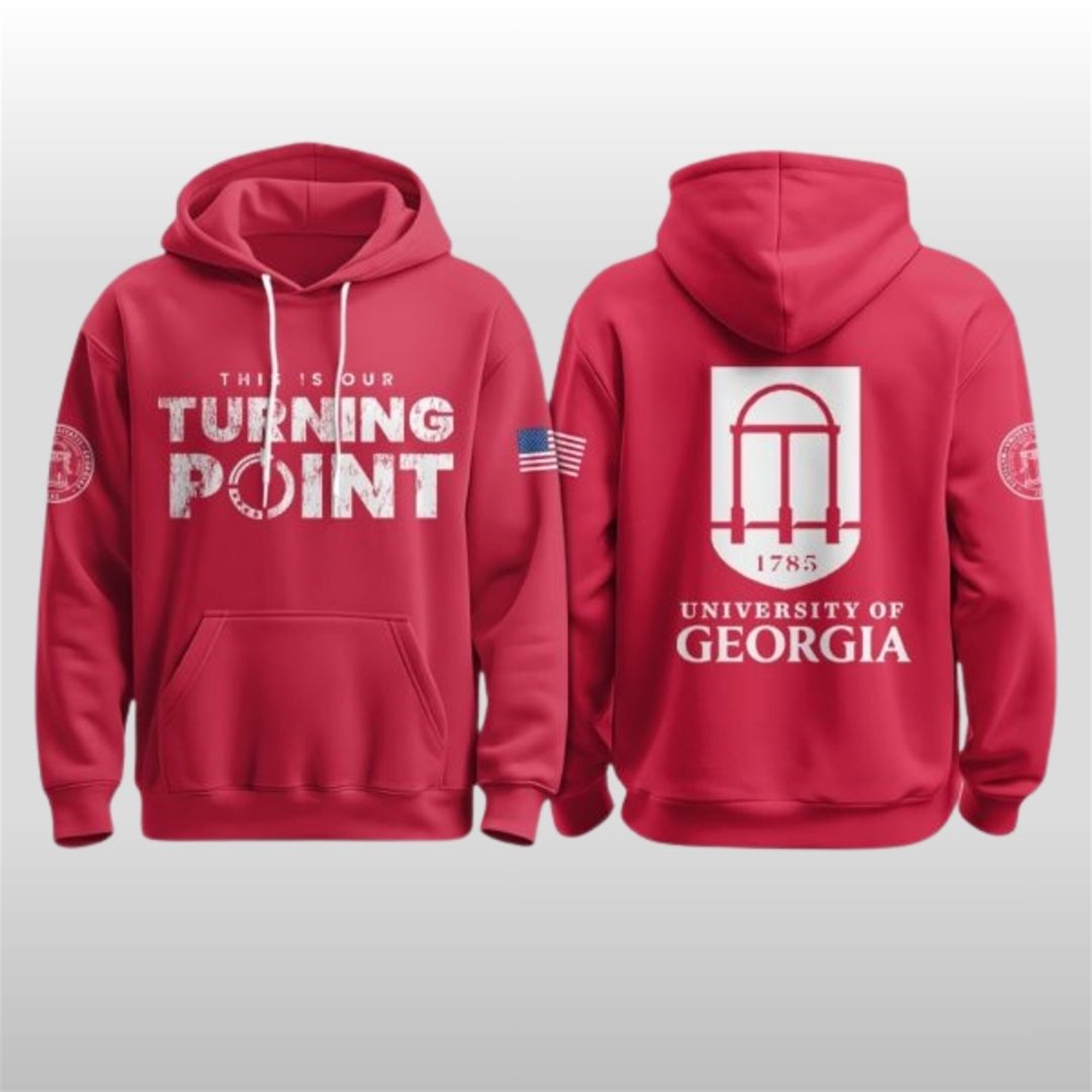 This design evokes a powerful sense of unity, optimism, and proactive change. It’s a statement piece that allows you to connect with fellow Bulldogs and express the emotional conviction that “our moment” has arrived. Don’t miss out on securing this piece of symbolic 2025 University of Georgia Turning Point Tee.
