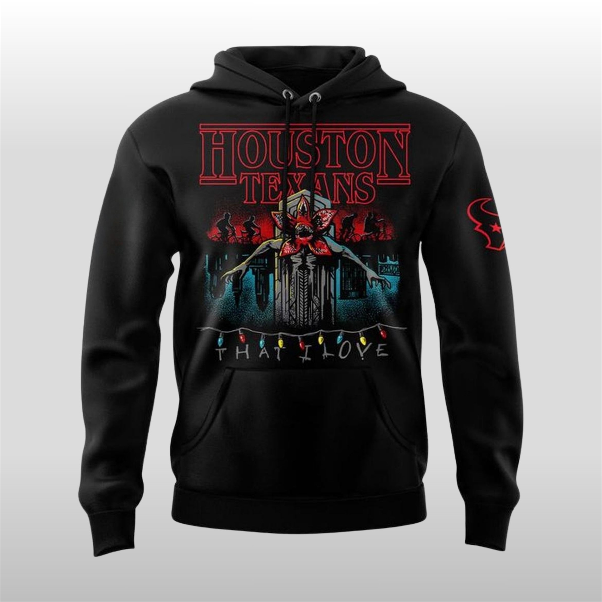 The Ultimate Fan Mashup: The 2025 Houston Texans Christmas Game Of Stranger Things That I Love Hoodie