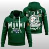 The design features a deep forest green base that makes the iconic “U” logo pop with unmatched clarity. On the front, the Miami Hurricanes Postseason Football Hooded Sweatshirt showcases the prestigious bowl branding centered between the “2025” date, framed by delicate cotton blossom motifs that pay homage to the historic Texas venue. The back is a visual masterpiece, featuring a detailed graphic of a Hurricanes helmet and the specific game details etched onto a commemorative scroll.