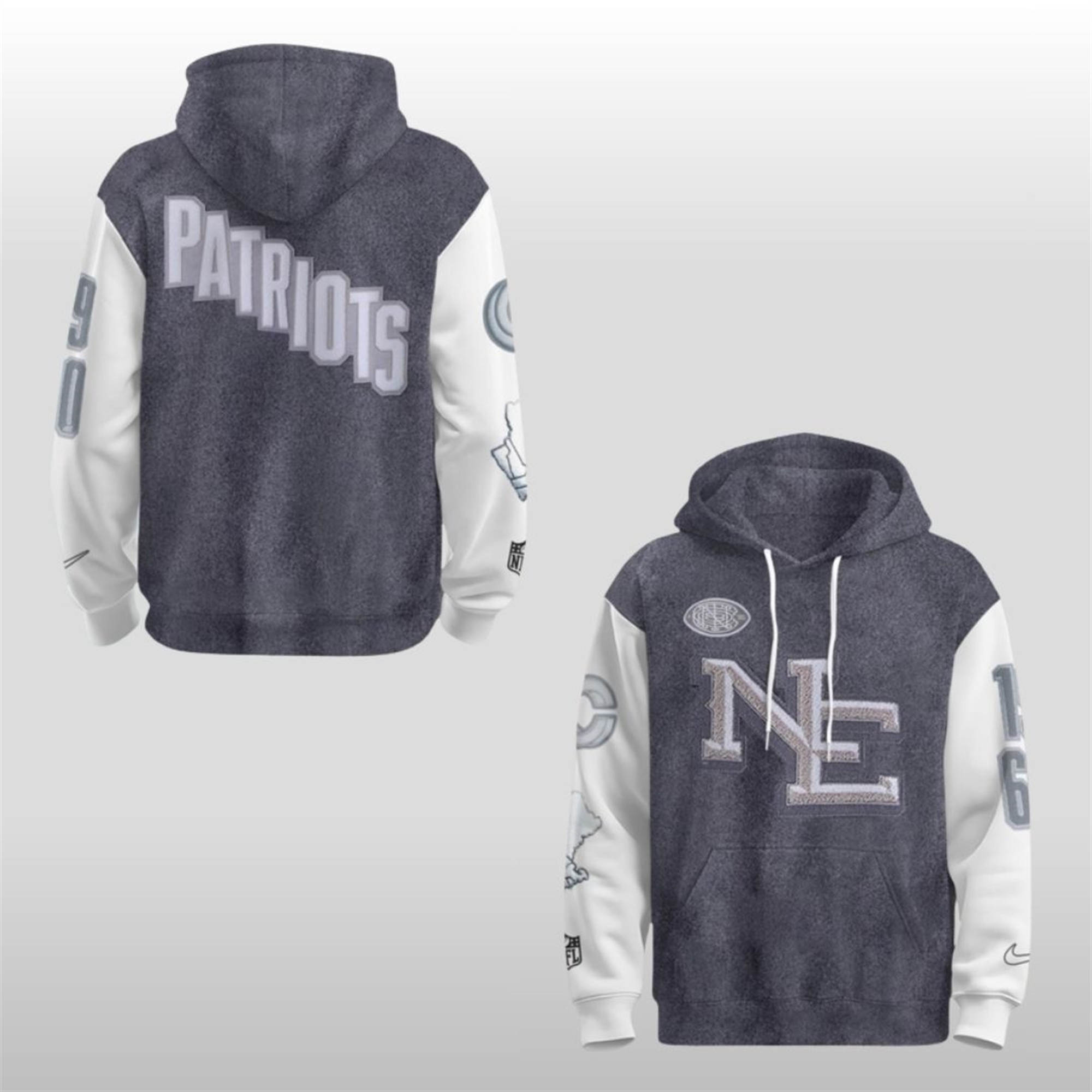 This isn’t just a hoodie; it’s a statement. Introducing the 2025 New England Patriots Gronk Style This Seasons Hottest Hoodie, a tribute to iconic, hard-hitting style. The deep charcoal, heathered body provides a rugged texture, contrasted sharply by bright white sleeves. The back proudly features the arched “PATRIOTS” lettering above a bold “90” on the left sleeve.