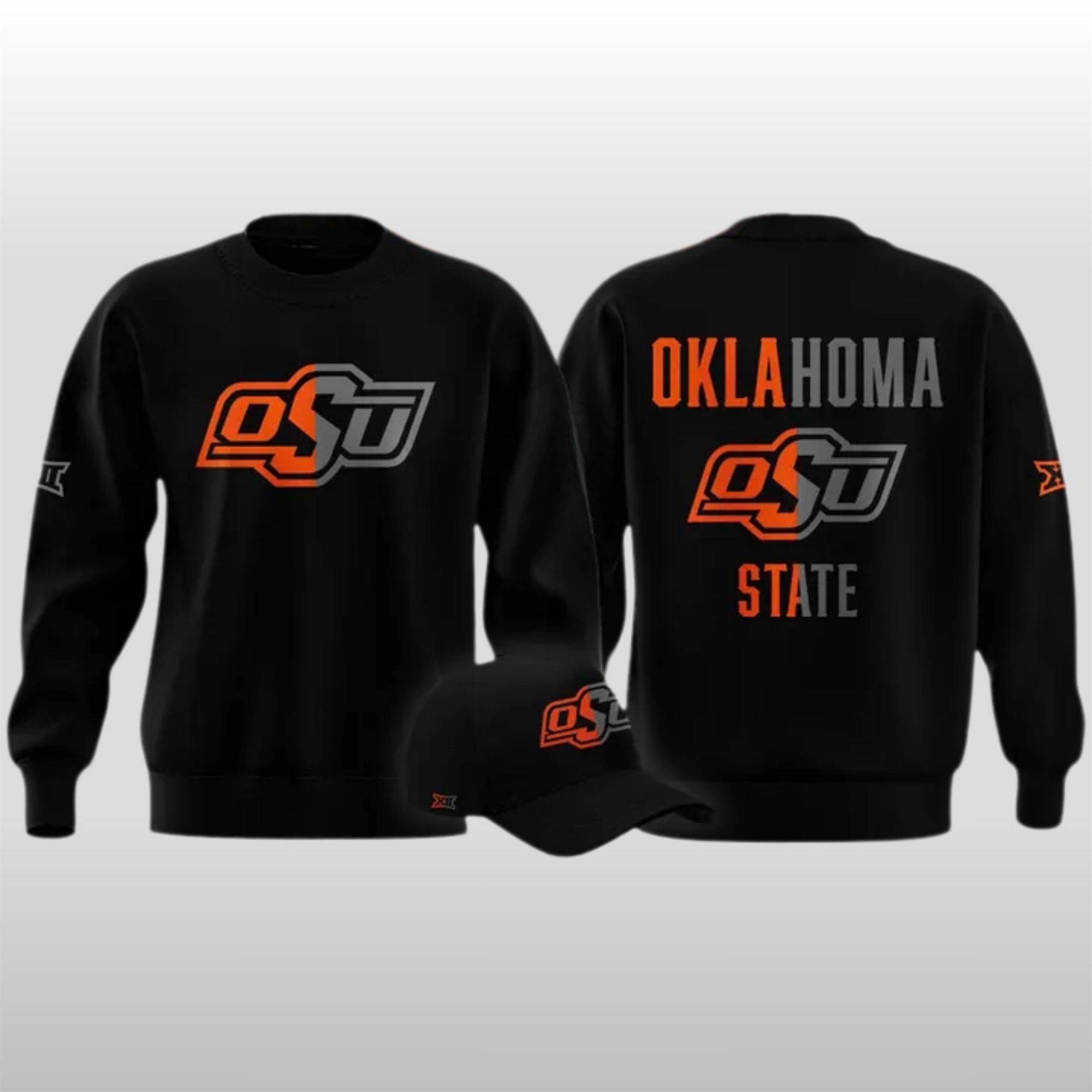 Introducing the 2025 OSU Cowboy Football Back In Black Hoodie Cap set—the essential ensemble for every devoted supporter. This premium black hoodie features the striking, instantly recognizable OSU logo in bold orange and grey across the chest. The back proudly displays “OKLAHOMA OSU STATE” lettering, mirroring the front design and emphasizing your allegiance from every angle. It’s a heavy-duty, soft-touch garment perfect for those crisp autumn Saturdays at the stadium or cheering from home.