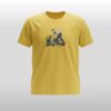 The design features a vintage-inspired aesthetic, with the central graphic rendered in soft, earthy tones that pop against the bold yellow fabric. This choice highlights a sophisticated approach to fan apparel, favoring artistic storytelling over traditional branding. It’s a wearable piece of pop-culture history that feels like a boutique find rather than a standard souvenir.