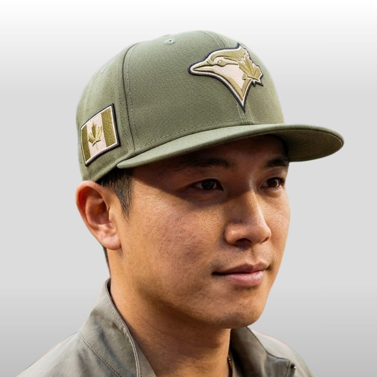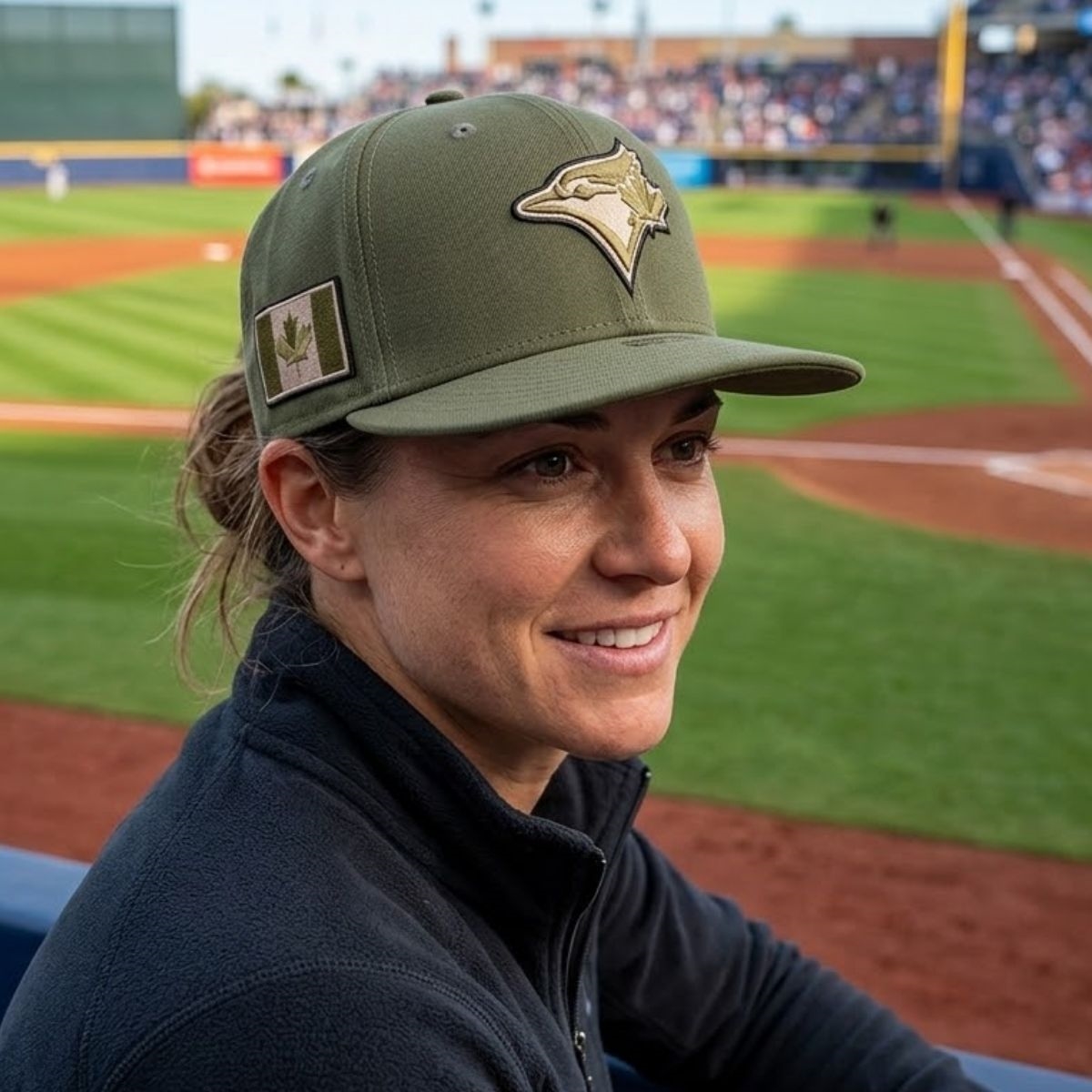 The design of this headwear moves away from the traditional bright blues and whites to embrace a rugged, military-inspired aesthetic. The central focus is the iconic bird logo, which has been reimagined with a textured, matte finish in shades of sand and olive. A meticulously stitched maple leaf rests within the logo, serving as a reminder of national pride. Every stitch is placed with precision, mirroring the dedication of the individuals being honored during the mid-season tribute ceremonies. The brim features a subtle “Toronto Blue Jays” watermark in a tonal screen print, adding a layer of sophisticated branding that remains understated.