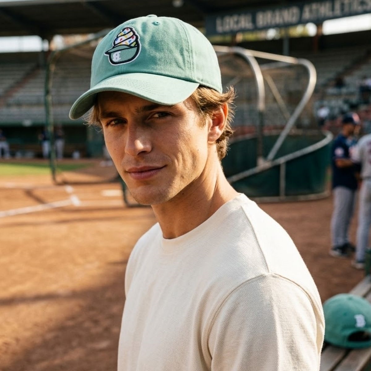 The aesthetic of this headwear draws direct inspiration from the vibrant palettes of the city’s specialized neighborhood gear. Eschewing the traditional navy and red, the cap features a soft, “seafoam” teal base that feels light and modern. The focal point is the beautifully detailed embroidery on the front panel: a classic soft-serve ice cream swirl nestled inside a striped stadium cup. This whimsical graphic captures the essence of a July game day. On the back, the iconic “B” is rendered in a clean, white serif font, providing a grounded anchor to the more playful imagery on the front. This design commemorates the mid-season festivities where fans of all ages gather to celebrate the warmth of the community and the joy of the game.