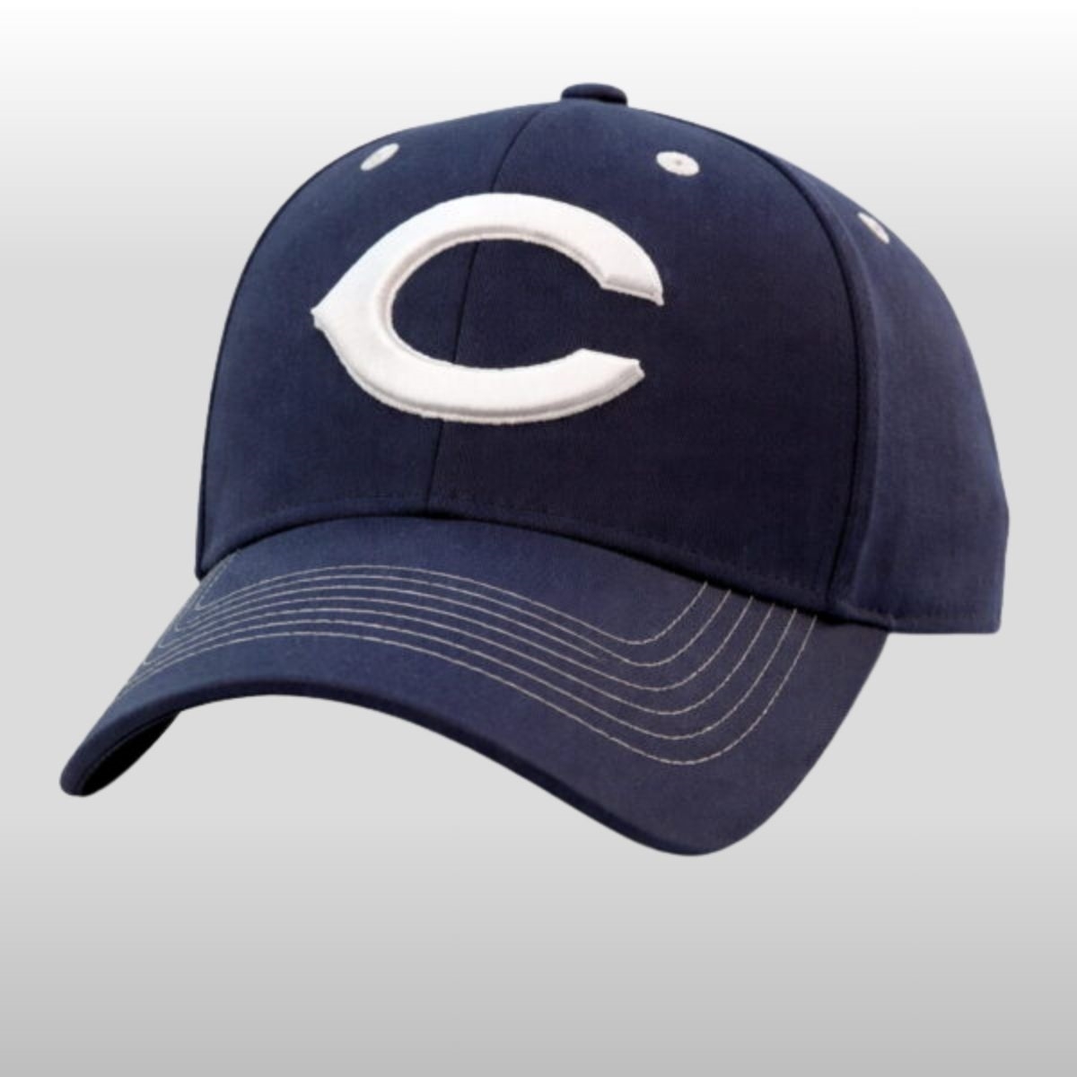 The hat features a sophisticated navy blue crown, providing a sleek, modern backdrop for the iconic, stylized “C” logo. Moving away from traditional color palettes, this design opts for a crisp, white 3D-embroidered crest that pops against the dark fabric. The visor is detailed with contrast silver stitching, adding a layer of premium texture that elevates it from a standard souvenir to a high-end lifestyle accessory.