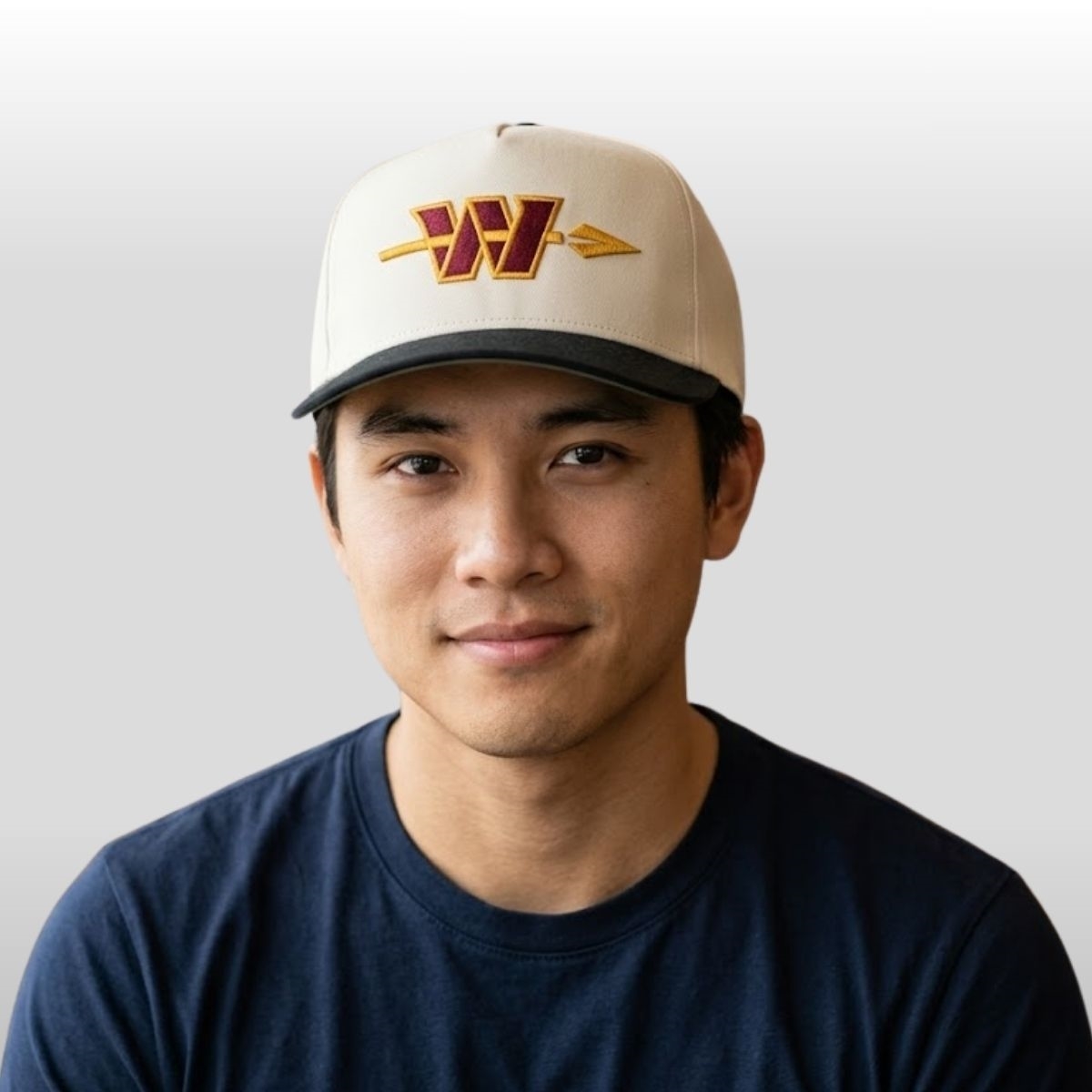 The design of this piece is a masterclass in balanced aesthetics, utilizing a clean cream-colored crown to make the primary elements pop. The front features an intricately embroidered “Washington” logo in deep burgundy, encased in a sharp gold border that catches the light from the stadium rafters. Piercing through the center of the letter is a stylized gold spearhead, a subtle nod to the storied history of the franchise while pushing toward a sleek, aerodynamic future. The contrast provided by the solid black visor adds a touch of modern edge, ensuring the colors remain grounded and wearable for any occasion outside the arena.