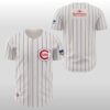 This jersey is a meticulous tribute to the clean, mid-century aesthetic that defined an era. Eschewing modern complexities, the design returns to the crisp, off-white pinstripes that look just as sharp today as they did under the afternoon sun sixty years ago. The centerpiece is the iconic circular “C” logo on the left chest, rendered in a vibrant, vintage red that serves as a bold focal point against the classic cream base.