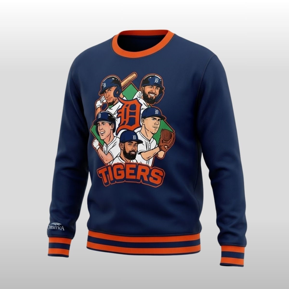 Step into the ballpark with a fresh, animated energy wearing the 2026 Detroit Tigers Cartoon Shirt Giveaway. This year, the focus shifts from traditional pinstripes to a bold, illustrative celebration of the team’s most beloved personalities. Designed with a nod to Saturday morning classics, this navy blue crewneck transforms the grit of the diamond into a vibrant, artistic tribute that fans of all ages can appreciate.