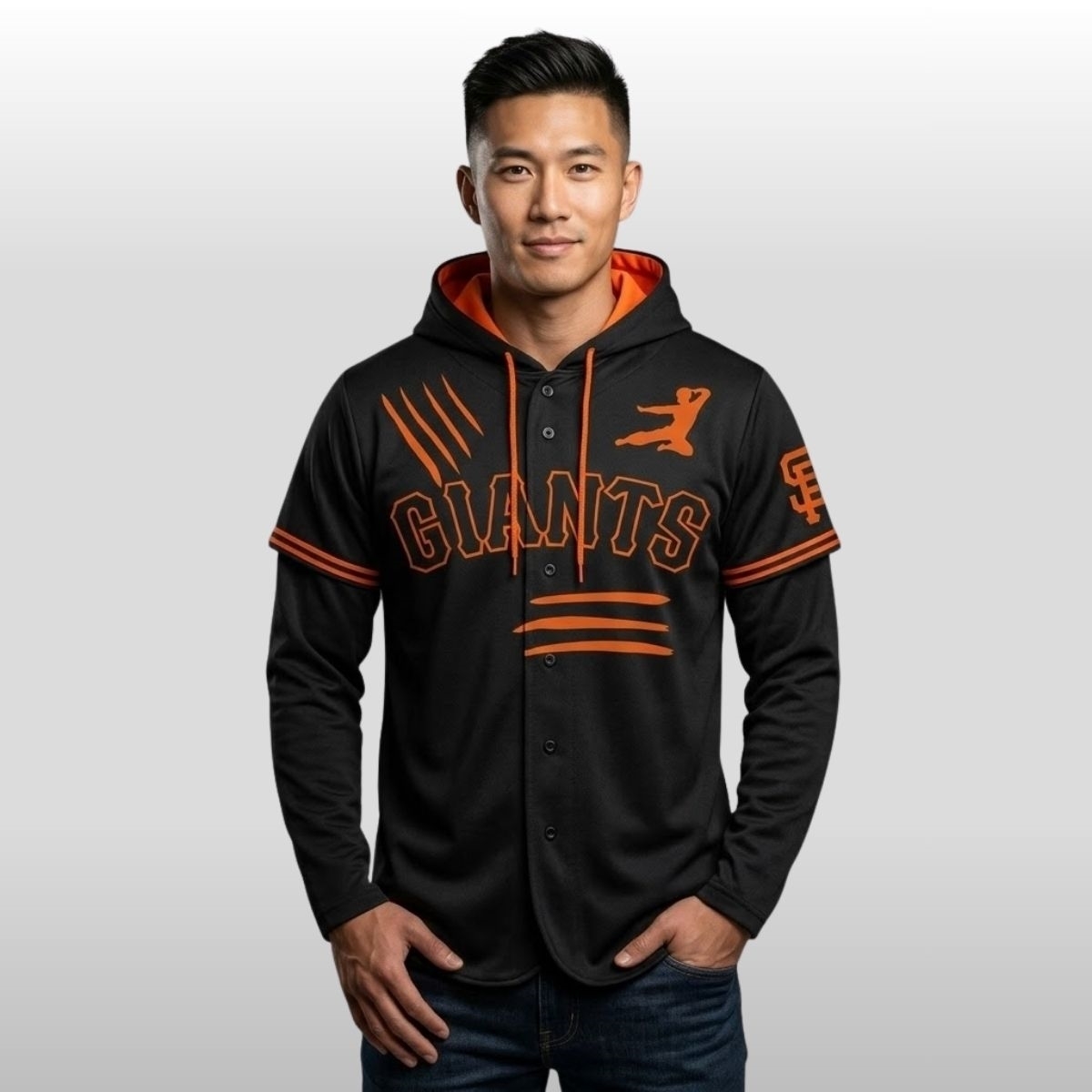 The 2026 SF Giants Bruce Lee Baseball Jersey Hoodie redefines fan gear by blending the structure of a classic button-down jersey with the cozy utility of a modern hoodie. The aesthetic is dominated by a sleek, “Nightshade Black” base, accented with “Ember Orange” highlights that mirror the intensity of a dragon’s breath.
