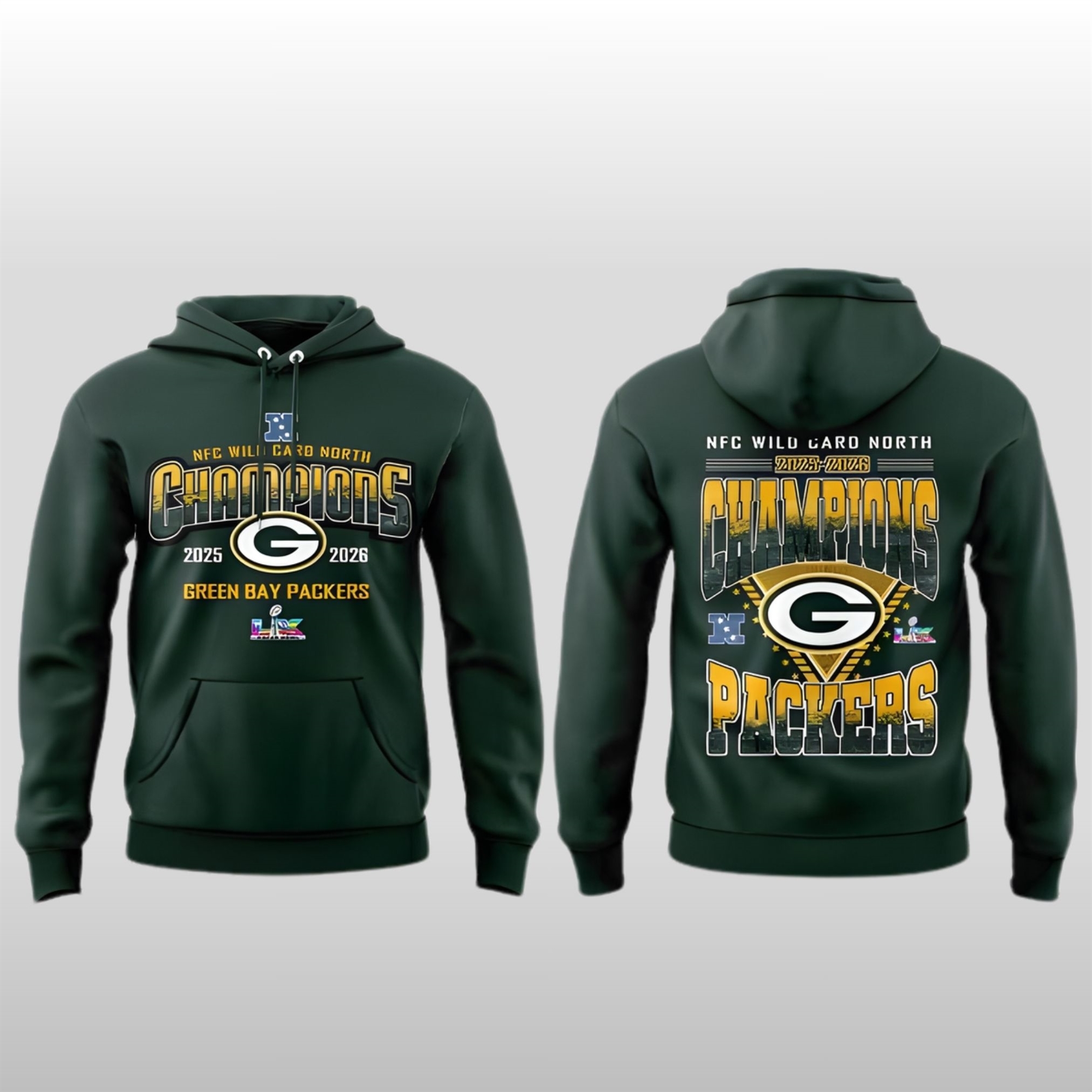Designed for the “Cheesehead” faithful who bleed green and gold, the graphic features the 2026 NFC North Champions insignia alongside the road to the Wild Card. Whether you’re braving the winter winds at Lambeau Field or watching from home, this hoodie ensures everyone knows who reigns supreme in the North.