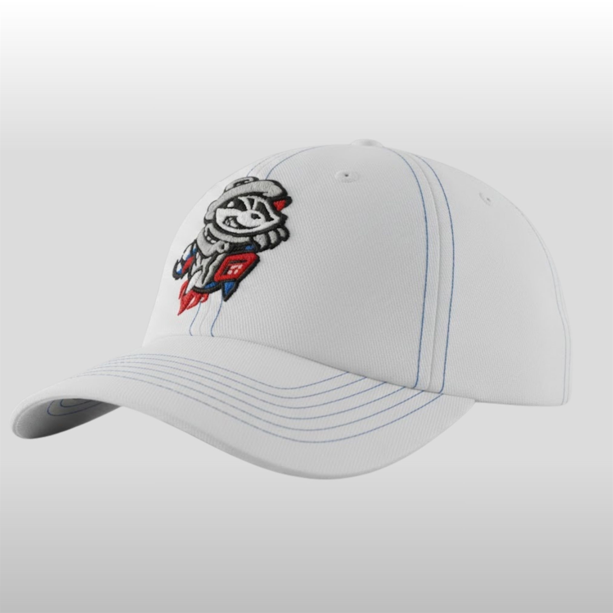 The hat is a masterclass in detail and personality. Moving away from standard sporting apparel, it features a premium black canvas that serves as the perfect backdrop for the custom “Trash Panda” embroidery. The centerpiece is a stylized, mischievous raccoon—the unofficial mascot of the night—rendered in crisp white and vibrant red stitching.