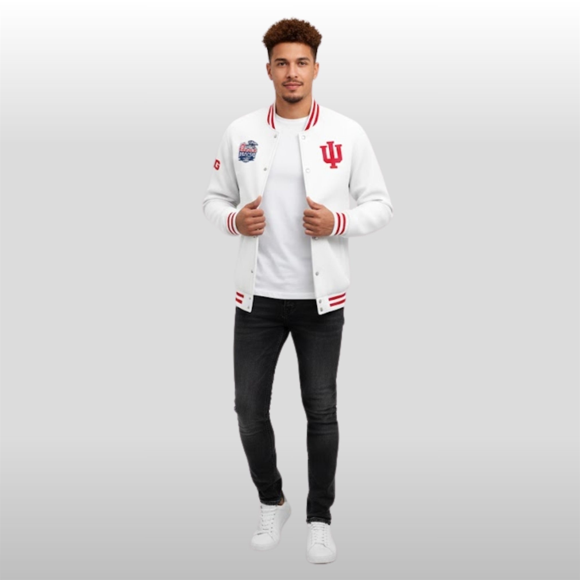 The 2026 Peach Bowl victory marks a new era for Indiana Football. This “Champions Edition” jacket has quickly become a fan favorite for its “Varsity-Elite” look—combining classic collegiate stripes with sleek, high-contrast white and red paneling. It’s not just fan apparel; it’s a symbol of a program on the rise and a season Hoosier Nation will never forget.