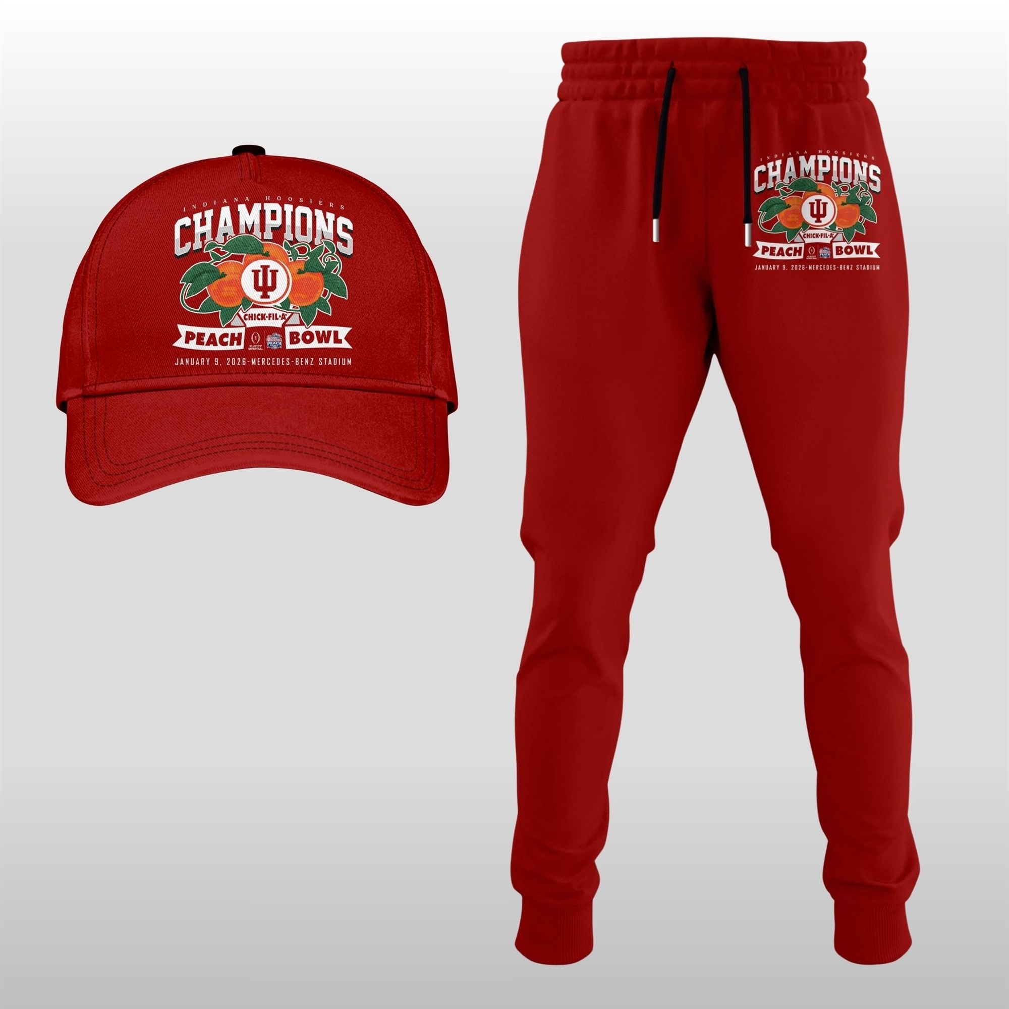 Celebrate the Hoosiers’ historic victory with the official 2026 Indiana Hoosiers Peach Bowl Champions Hoodie, Cap, and Joggers. Limited edition fan gear!