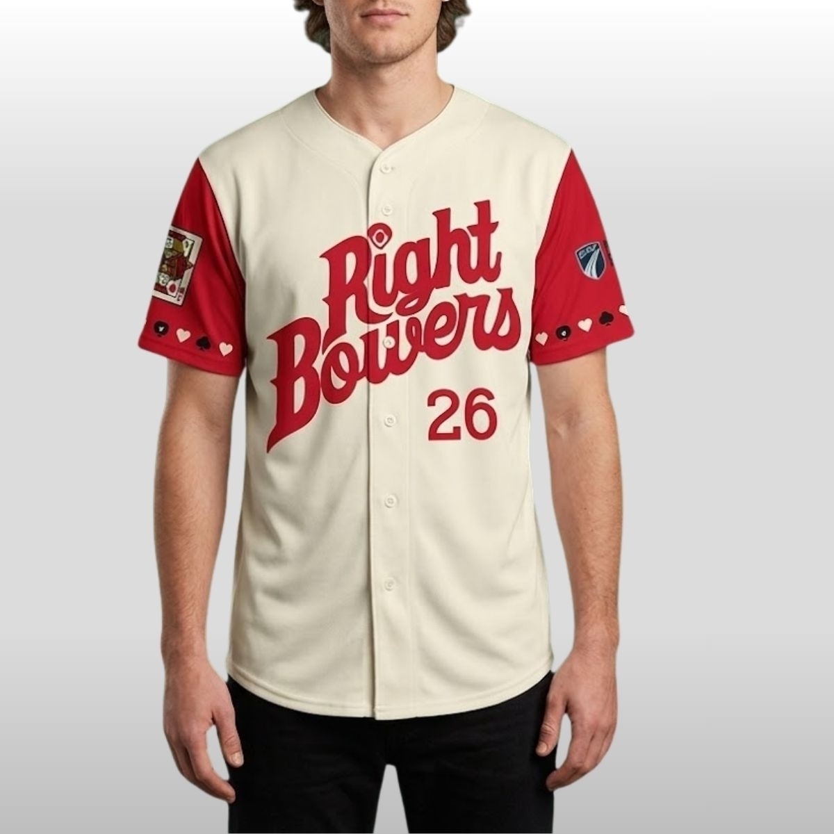The design of this jersey marks a creative departure from standard athletic apparel by focusing on the social fabric of the fans. The primary lettering is rendered in a deep red, textured tackle twill that stands out against the off-white fabric, mimicking the look of a high-stakes card table. On the right sleeve, a detailed patch depicts the “Right Bower” playing card, adding a layer of storytelling to the garment. The number 26 is printed cleanly on the front, signifying the year of this exclusive release. It is a thoughtful construction that prioritizes comfort and character, making it a standout choice for those who want to carry the energy of the game night wherever they go.