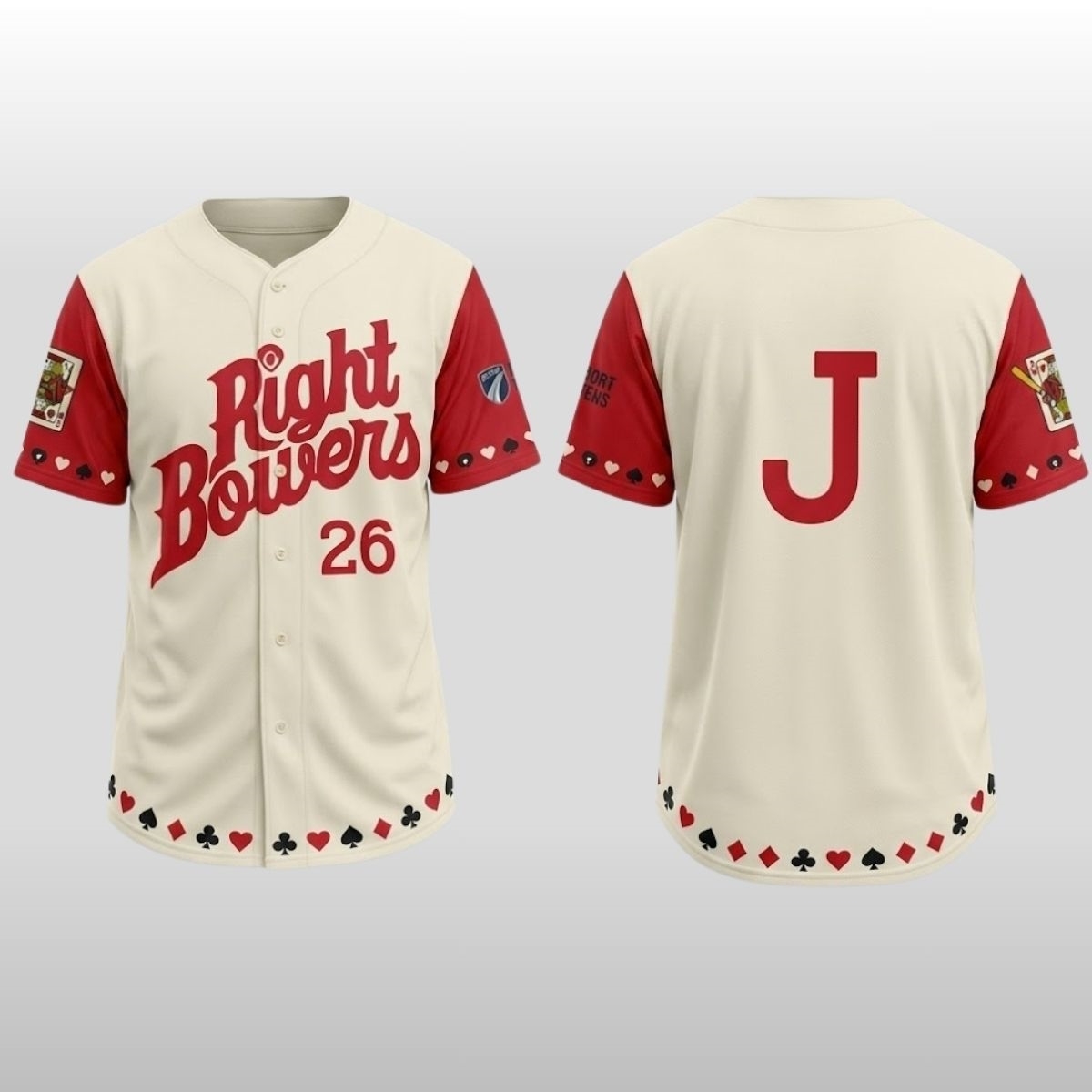 Step into the playful world of summer ball with a piece of memorabilia that perfectly captures the whimsical spirit of Madison. The 2026 Madison Mallards Right Bowers Jersey Giveaway is a vibrant tribute to the local card game culture that thrives in the stands and backyard patios across Wisconsin. This special event piece celebrates the community’s love for “Euchre,” featuring a distinct cream-colored base accented by bold crimson sleeves. The jersey is adorned with subtle suit symbols—hearts, diamonds, clubs, and spades—along the arm cuffs, while the chest proudly displays the “Right Bowers” name in a classic, swash-heavy script that evokes a sense of vintage competition and midwestern charm.