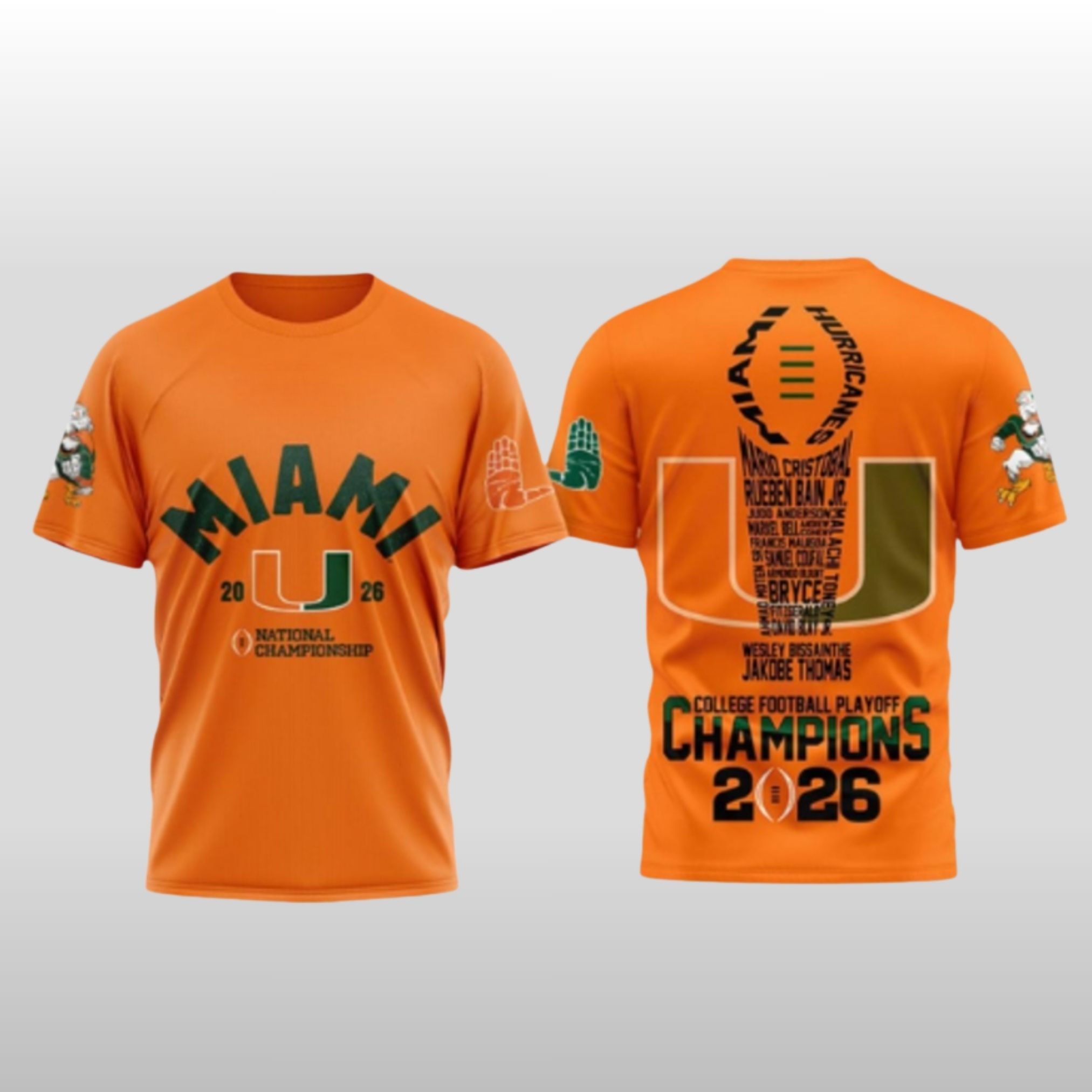 As the 2026 season culminates in glory, this limited-edition shirt serves as the definitive tribute to the roster that brought the trophy back to Coral Gables. Featuring the names of the standout playmakers and the visionary leadership that defined this run, the design bridges the gap between the legendary “Decade of Dominance” and the modern-day powerhouse. With the iconic orange and green color palette and sharp commemorative graphics, this shirt ensures you represent the best in the nation with the classic Miami flair.