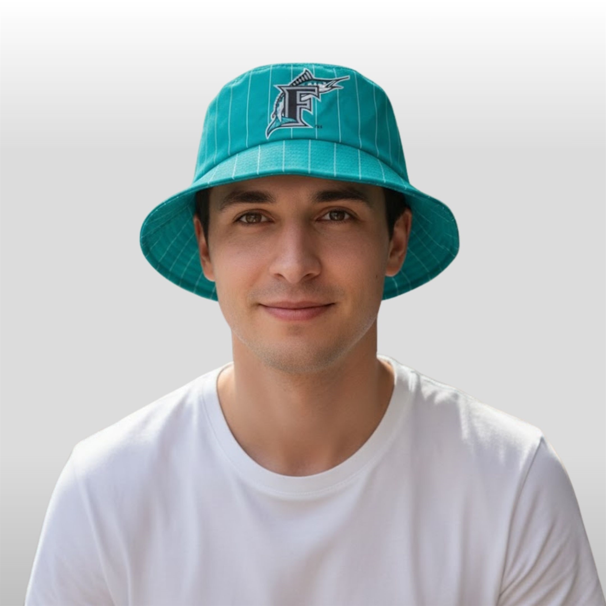 The 2026 Miami Marlins Reversible Bucket Hat Giveaway is a masterclass in functional design. One side features the classic “Caliente Teal” pinstripe pattern, a nostalgic nod to the team’s roots. The crisp white lines over the vibrant teal base create a sharp, retro-inspired aesthetic that honors the local legacy. Centered on the front is the iconic Marlins logo, rendered with high-definition stitching that stands out against the pinstriped backdrop.