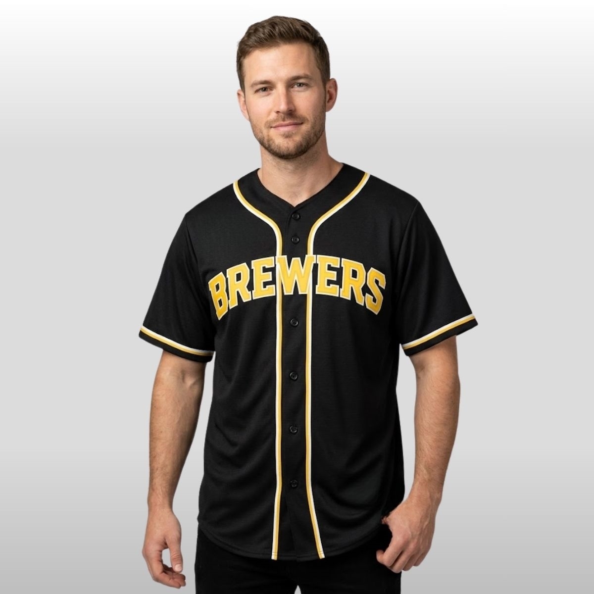 Elevate your game-day wardrobe with a piece that balances bold modern aesthetics with a deep-rooted connection to nature. The 2026 Milwaukee Brewers Fashion Black Out Jersey is a striking departure from traditional sportswear, featuring a sleek, pitch-black fabric that serves as the perfect canvas for the iconic “BREWERS” lettering. This text is rendered in a vibrant, sun-soaked yellow with a crisp white outline, creating a high-contrast look that pops with intensity. This specific release gained significant momentum during the city’s recent “Green Canopy” initiative, an environmental celebration where fans wore the jersey to symbolize the strong, silent resilience of urban forests.