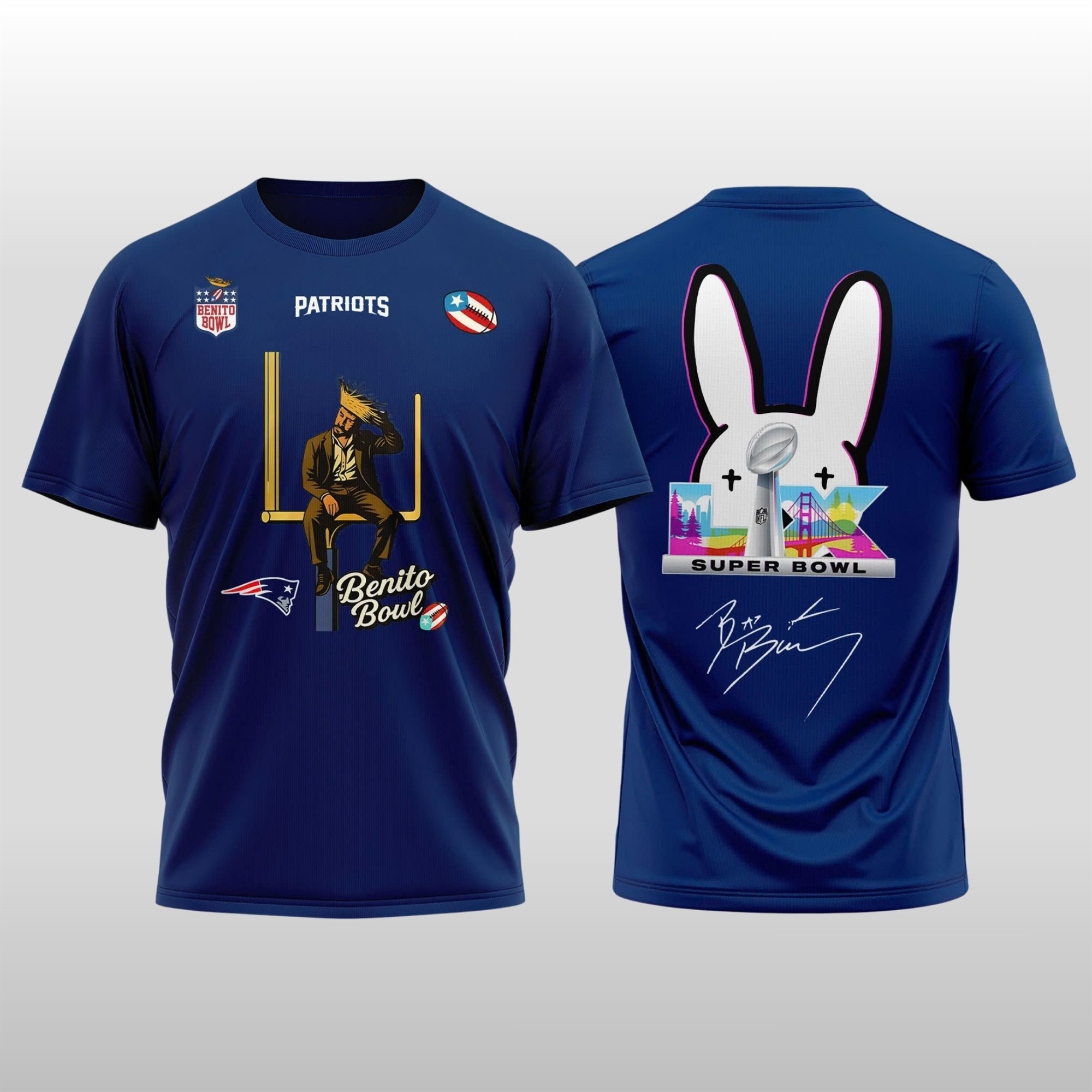 The internet buzz surrounding the 2026 New England Patriots Bad Bunny Super Bowl LX Halftime Show Hoodie Shirt ignited the moment teaser images hit TikTok and Instagram. Fans were instantly drawn to the unexpected collaboration, praising the way it reimagines the New England aesthetic through a colorful, reggaeton-inspired lens.