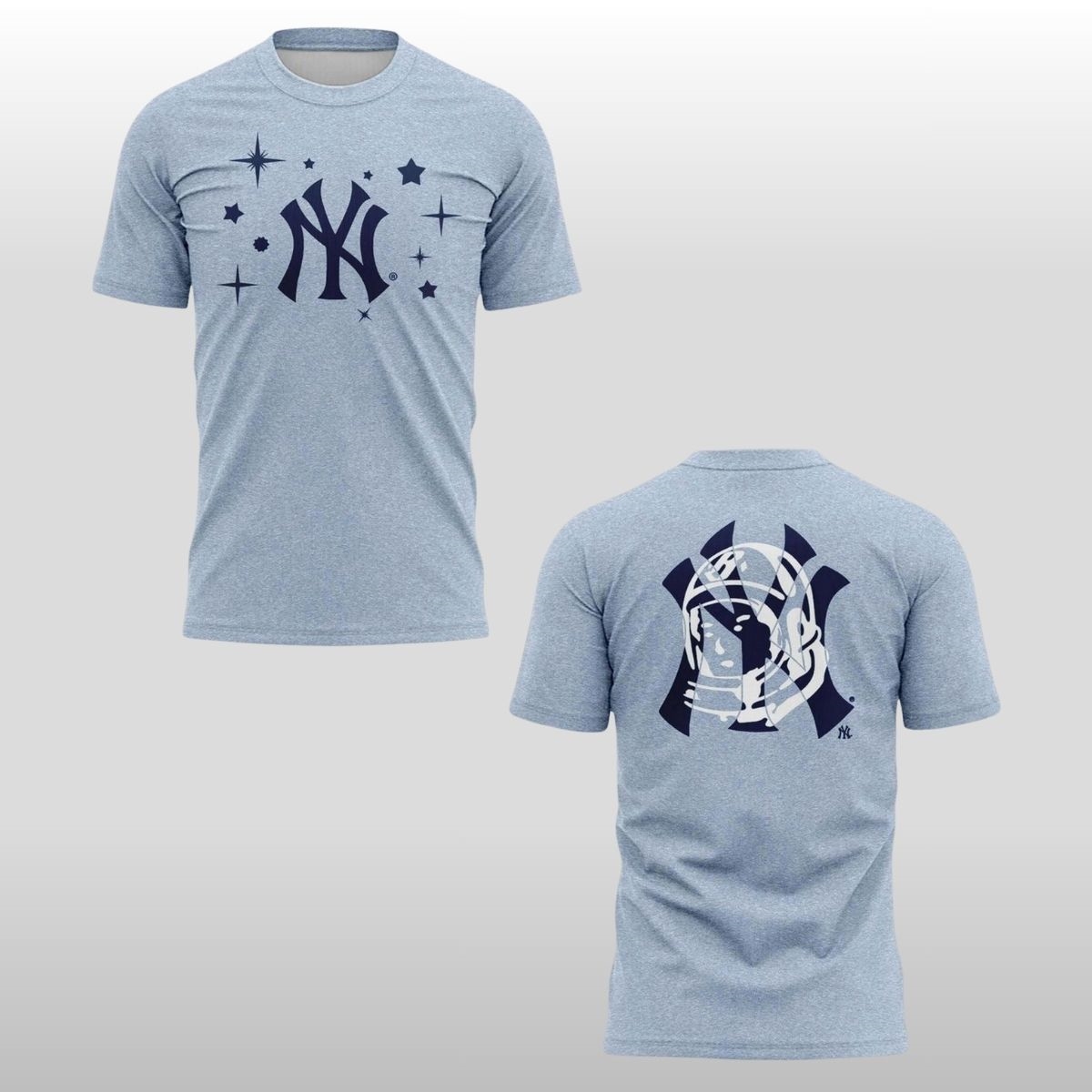 The intersection of classic Bronx heritage and avant-garde streetwear reaches a new peak with the 2026 New York Yankees x Billionaire Boys Club Ice Cream Hoodie. This collaboration breathes celestial life into the most recognized logo in sports, swapping traditional pinstripes for a star-studded dreamscape. The garment features a heather grey fleece foundation that feels substantial yet soft, serving as the perfect muted canvas for the bold, navy blue iconography that defines the collection.
