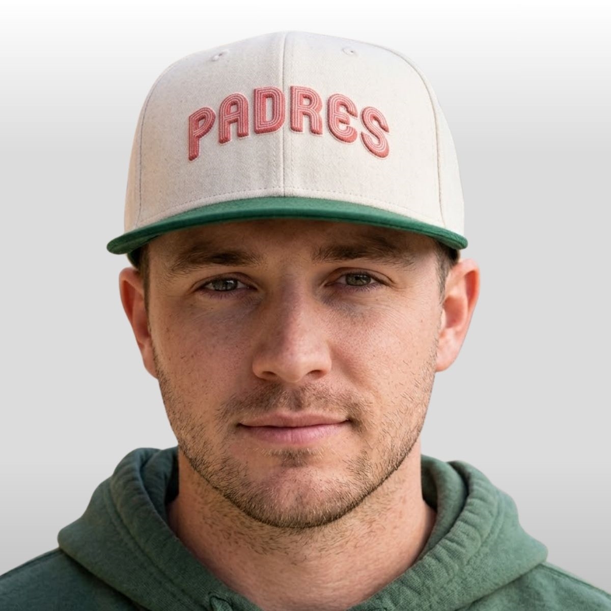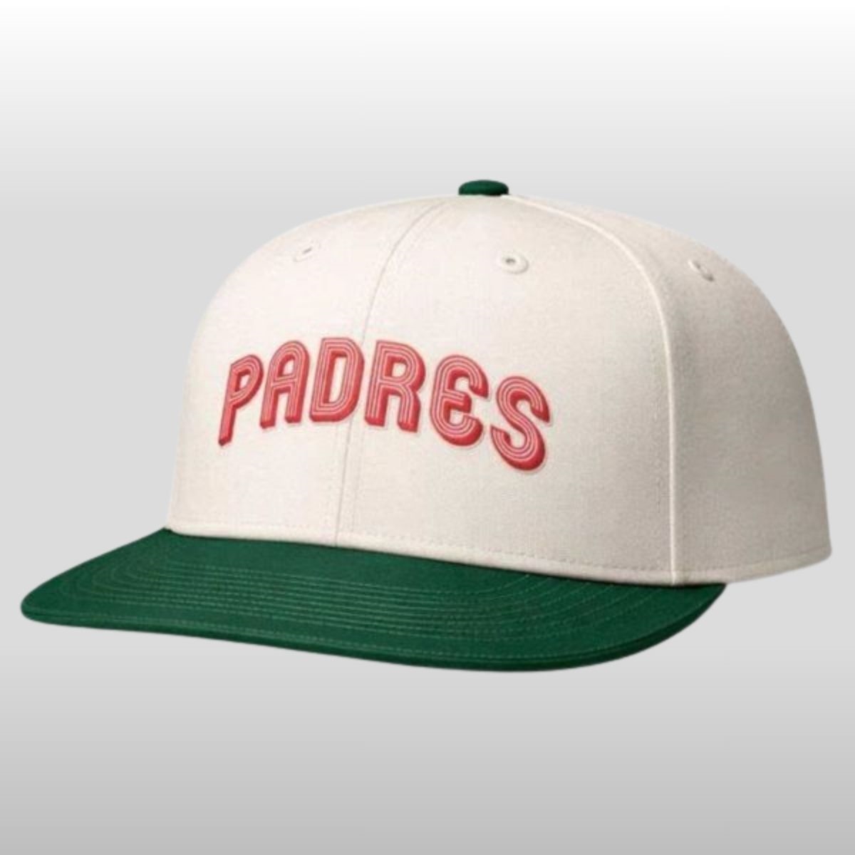 The design of this 2026 Padres Mexican Heritage Hat Giveaway moves beyond standard team gear by incorporating a color palette that feels both retro and modern. The cream fabric provides a clean, neutral base that allows the bold pink lettering to serve as the visual centerpiece. By choosing a soft, rounded font for the “PADRES” text, the designers have captured a sense of approachability and celebration. The forest green visor adds a grounded, earthy element to the aesthetic, making it a versatile accessory for any wardrobe. This giveaway hat is meant to foster a deeper connection between the team and the local community, offering a tangible symbol of appreciation for the diverse backgrounds that fill the stands every season.