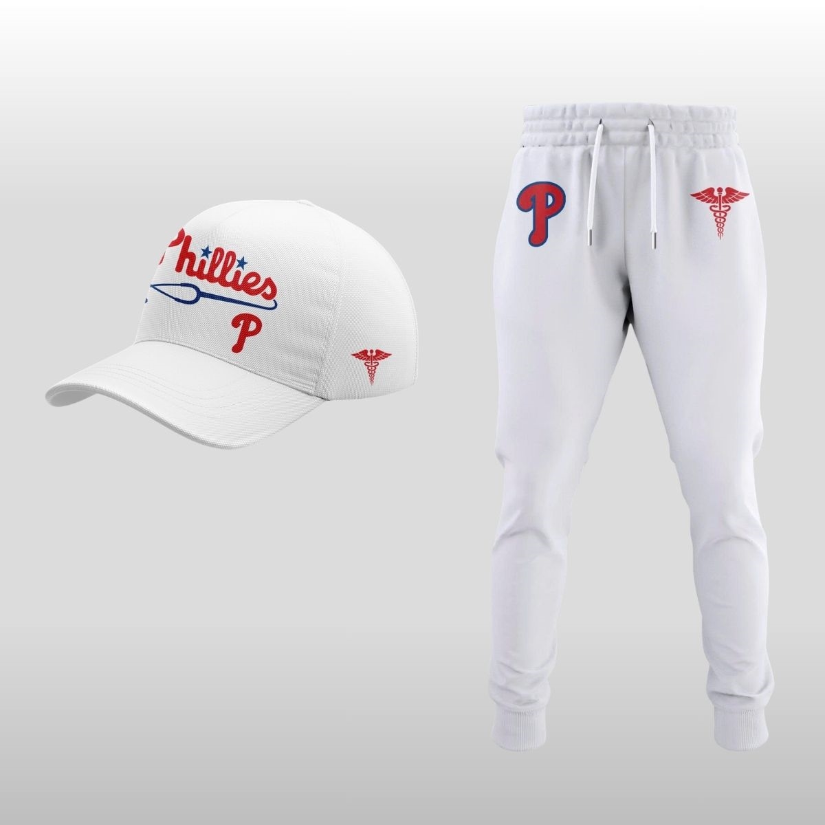 The design of this jersey is a thoughtful blend of classic Philly pride and medical symbolism. Shifting away from the standard pinstripes, the jersey features a clean, crisp white base that mirrors the professional attire of the healthcare world. The iconic “Phillies” script on the front is reimagined in a bold red, underlined by a unique navy blue stethoscope graphic that weaves seamlessly into the lettering.
