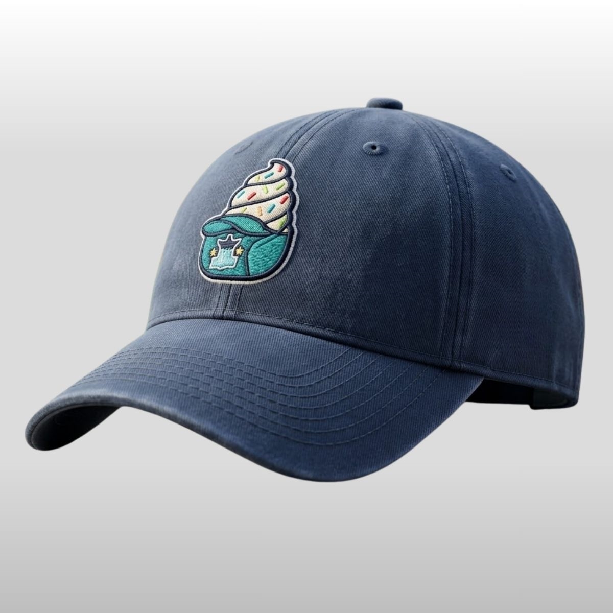 What makes this accessory so appealing is how it bridges the gap between sports enthusiasm and local lifestyle. The designers focused on the sensory experience of a summer afternoon, choosing colors that pop against the deep blue base. The yellow accents represent the bright sunshine of the season, while the sky blue touches provide a refreshing contrast. It’s a piece that invites conversation and highlights a shared local passion without needing a loud or traditional aesthetic. By focusing on the “ice cream” motif, the hat taps into a sense of childhood nostalgia that resonates with fans of all ages, making it a versatile addition to any casual outfit. Whether you are heading to a local creamery or walking through the park, this Philadelphia-inspired sundae cap is the perfect way to show your local pride with a wink and a smile.