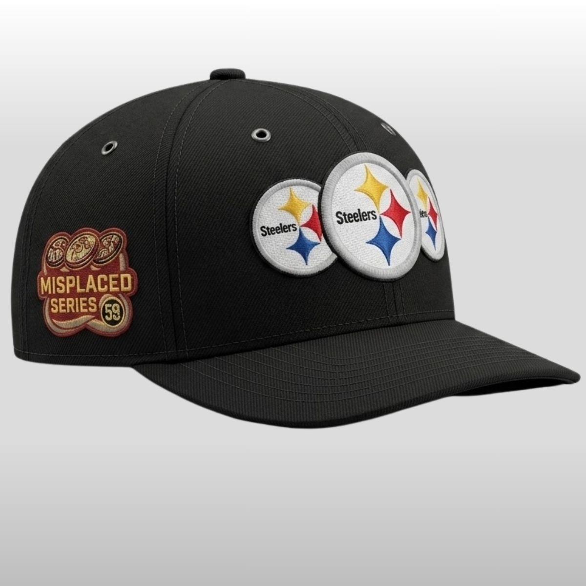 The 2026 Pittsburgh Steelers Misplaced Series Hat has quickly become a focal point for enthusiasts who value a playful twist on traditional sports aesthetics. This particular piece stands out by intentionally leaning into a surrealist design choice, moving away from the standard centered logos seen for decades. It honors the city’s deep industrial roots while celebrating the “Steelmark” logo in a way that feels fresh, experimental, and modern. Fans are particularly drawn to the bold “MISPLACED SERIES” embroidery on the side panel, featuring a rich crimson and gold color palette that frames three stylized gold coins, commemorating the storied history of the 59th season of this specific design lineage.