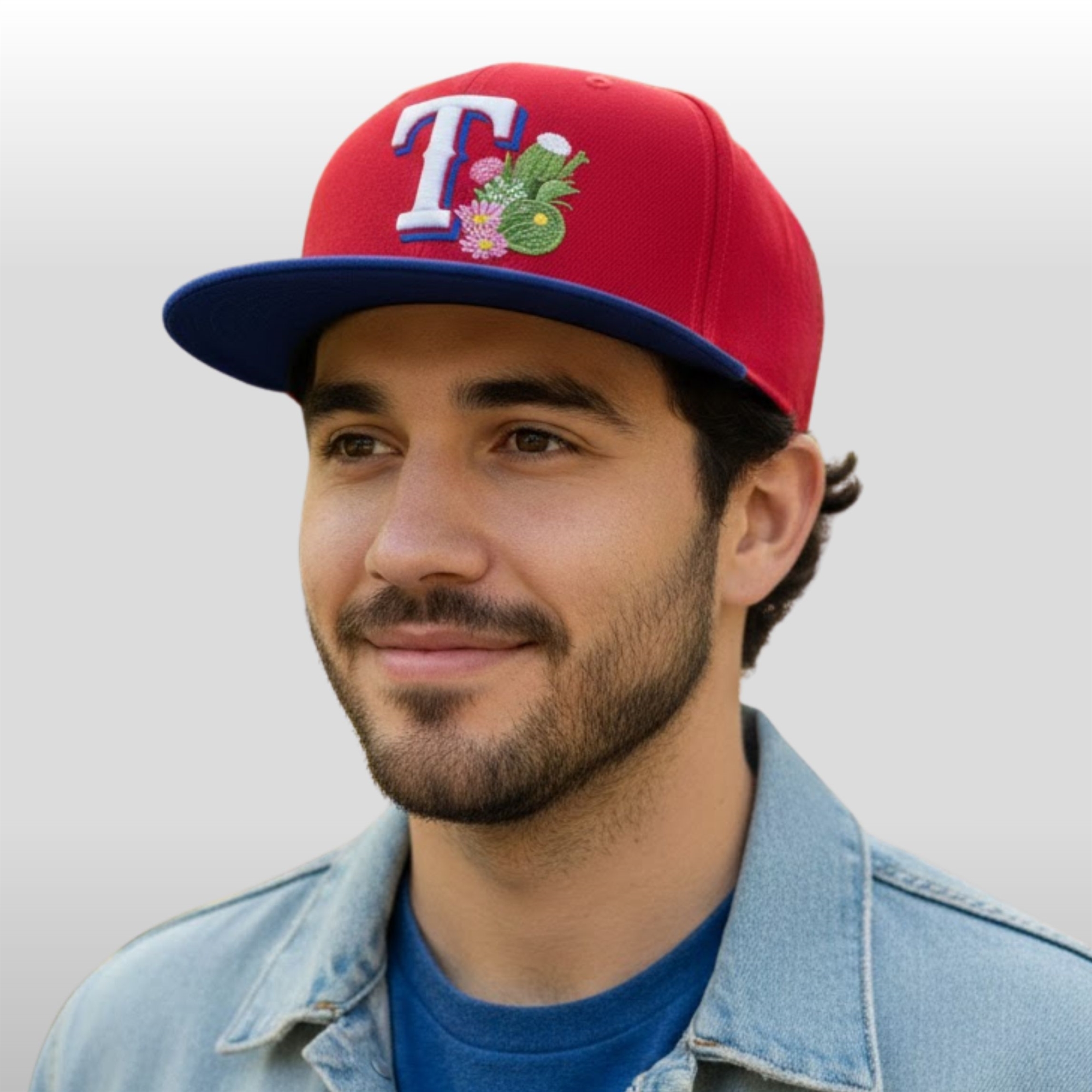 What sets this piece apart is the unique side patch. It showcases a stylized cactus silhouette intertwined with the iconic state star, creating a visual bridge between the team’s Texas roots and their spring home. The under-brim is finished with a non-glare charcoal grey, providing functional utility for players and fans alike while maintaining a sleek, cohesive look.