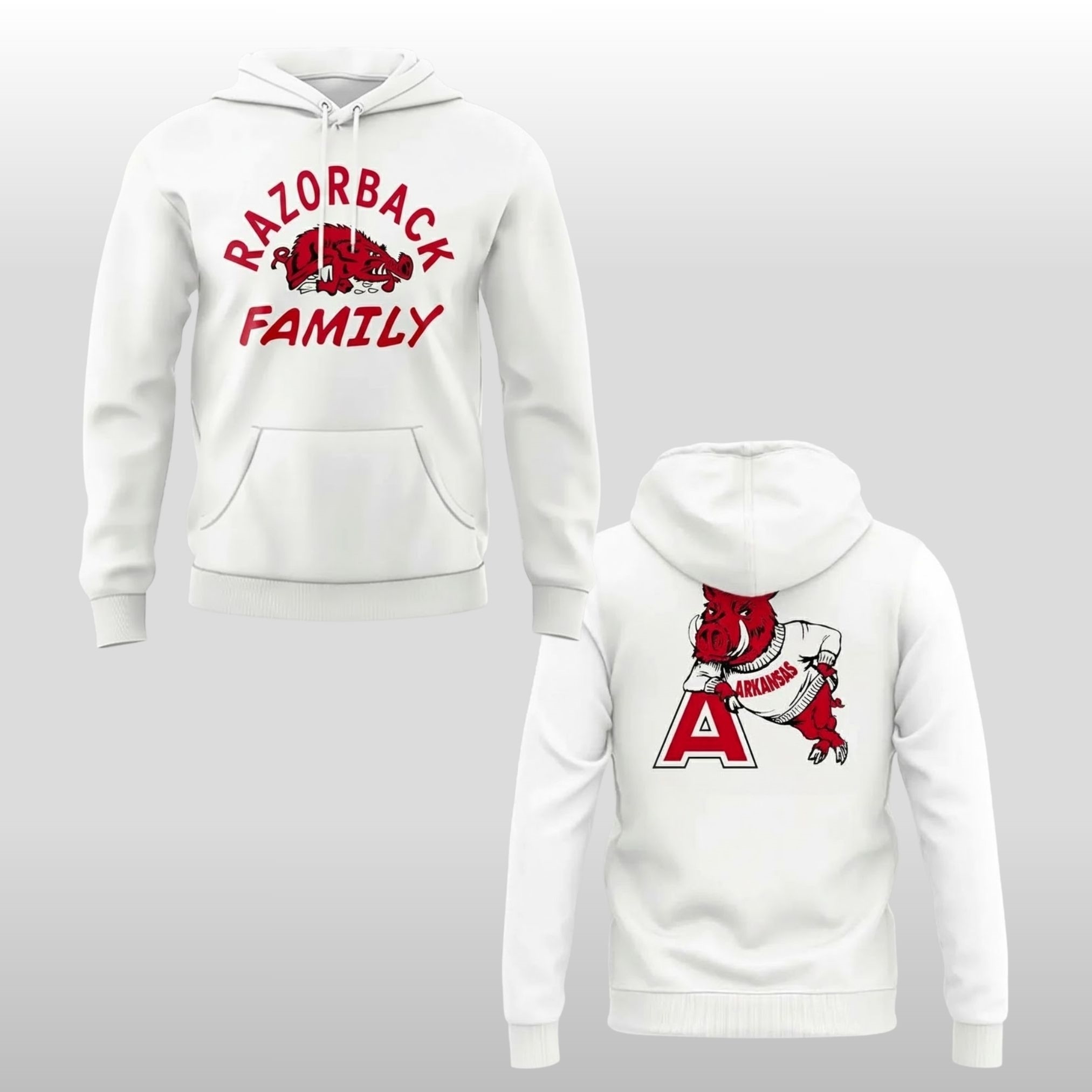 The 2026 Razorback Family Arkansas Razorbacks Hoodie Shirt is designed for the fans who consider their team loyalty a lifelong commitment. This unique piece of apparel features a crisp white canvas that makes the iconic cardinal red graphics pop. The front displays the bold “RAZORBACK FAMILY” arched text surrounding the classic running hog, signaling to everyone that you belong to one of the most passionate fanbases in the country.