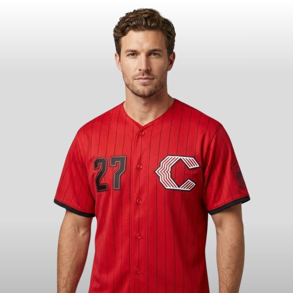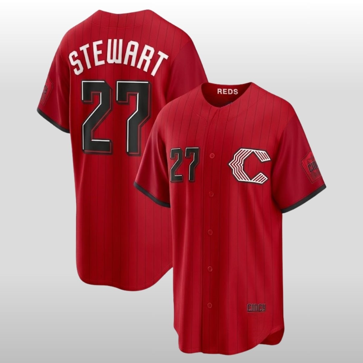 Step into the future of Queen City fashion with a garment that bridges the gap between traditional grit and modern urban flair. The 2026 release of this collection marks a significant moment for fans who want to wear their city’s pulse on their sleeves. This piece is specifically tied to the rise of young talent, capturing the energy of a new era at the ballpark. The 2026 Reds Sal Stewart City Connect Jersey features a bold, deep red base accented by sharp black pinstripes that run vertically, giving it a sleek, elongated silhouette. On the back, the name “STEWART” is arched in clean white block lettering, sitting atop a large, stylized number “27” outlined in black and white. The chest displays the reimagined “C” logo—a geometric, multi-lined icon that symbolizes the interconnected neighborhoods and the fast-paced spirit of the local community.