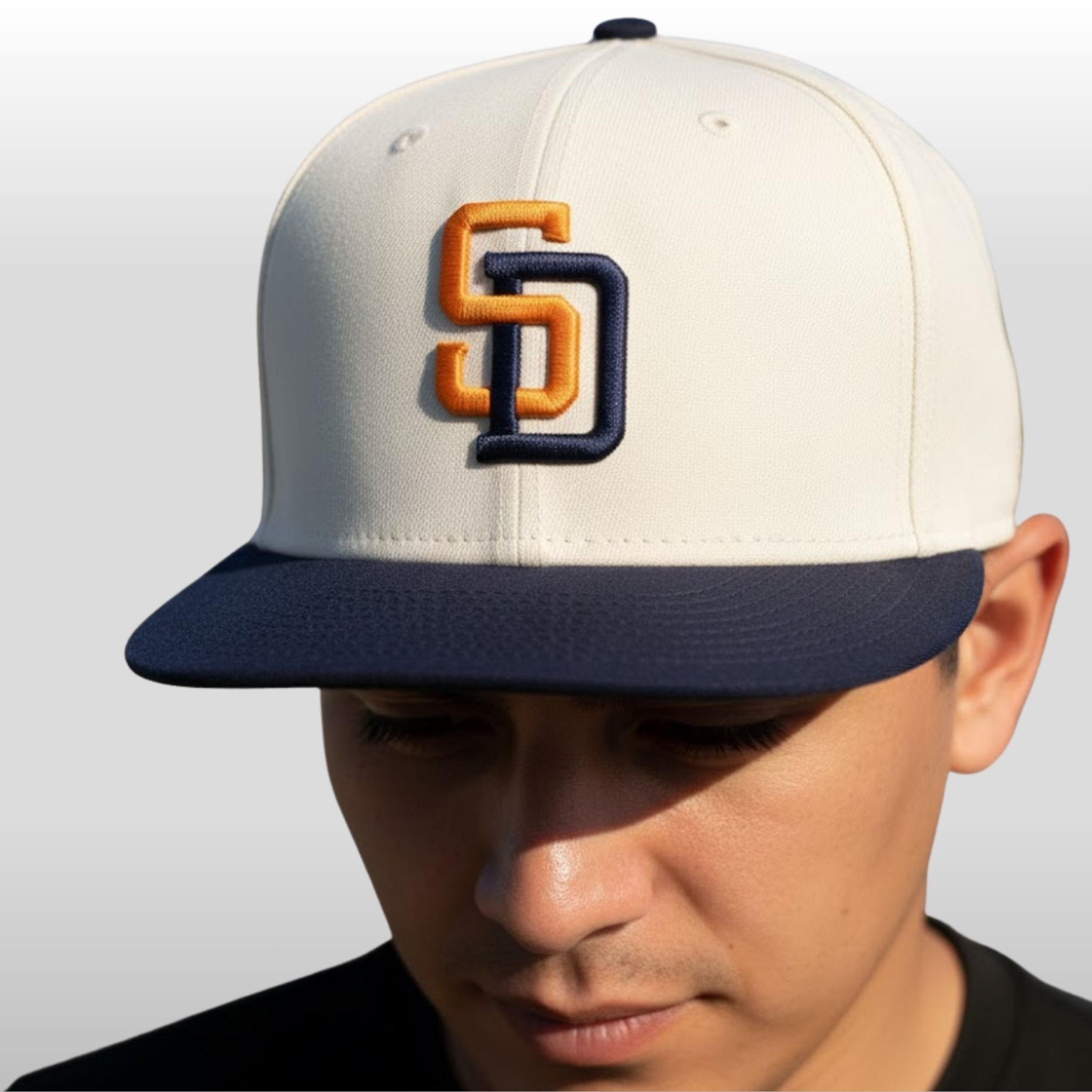 This hat is a masterclass in refreshing design. Moving away from standard earth tones, it embraces a crisp, off-white crown that serves as the perfect canvas for its bold accents. The front features the iconic “SD” monogram, reimagined in a striking dual-tone palette: a warm, sunset orange intertwined with a deep, midnight navy.