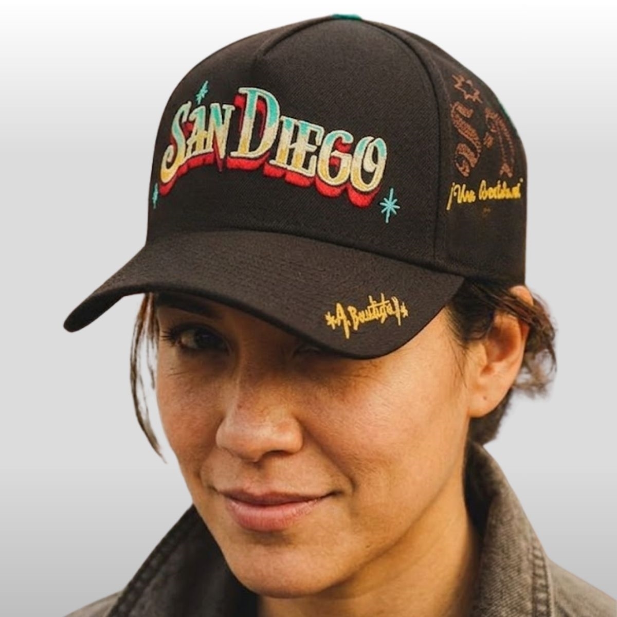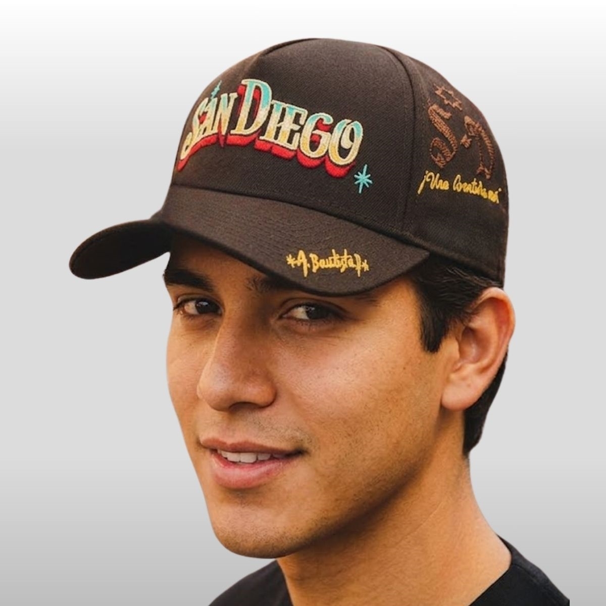 The 2026 SD Padres x Rotulos Bautista Hat is a masterclass in regional storytelling, blending contemporary headwear aesthetics with the vibrant street art culture of Southern California. This collaboration celebrates the iconic hand-lettered style of Rotulos Bautista, a legendary sign-painting studio known for its bold, multi-dimensional typography. The design features a striking “San Diego” script on the front crown, rendered in a 3D gradient of teal, cream, and sunset red that mirrors the city’s coastal horizon. Detailed embroidery on the side panels and brim highlights the artisan’s signature flair, including gold-threaded motifs and the distinctive “A Bautista” tag, making it a standout piece for those who appreciate heritage-driven design.