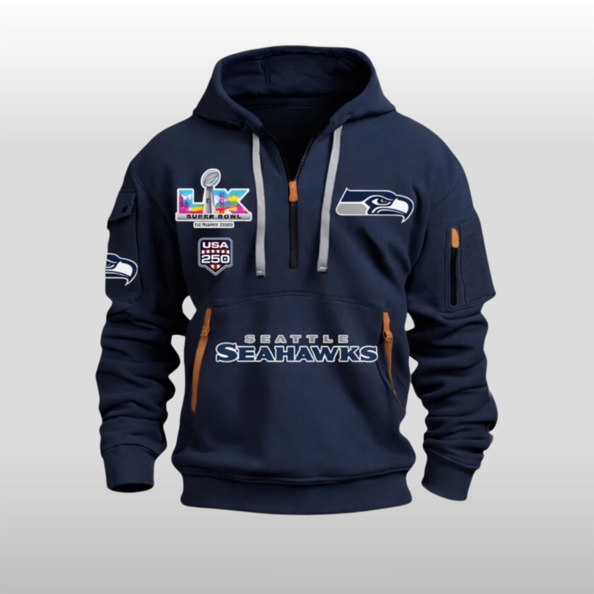 Experience the perfect blend of championship heritage and national pride with the 2026 Seahawks 2x Super Bowls Champions 250 USA Quarter Zip Hoodie. This limited-release piece is more than just apparel; it’s a commemorative hallmark designed for the ultimate fan, celebrating decades of dominance and the historic milestone of the nation’s 250th anniversary.