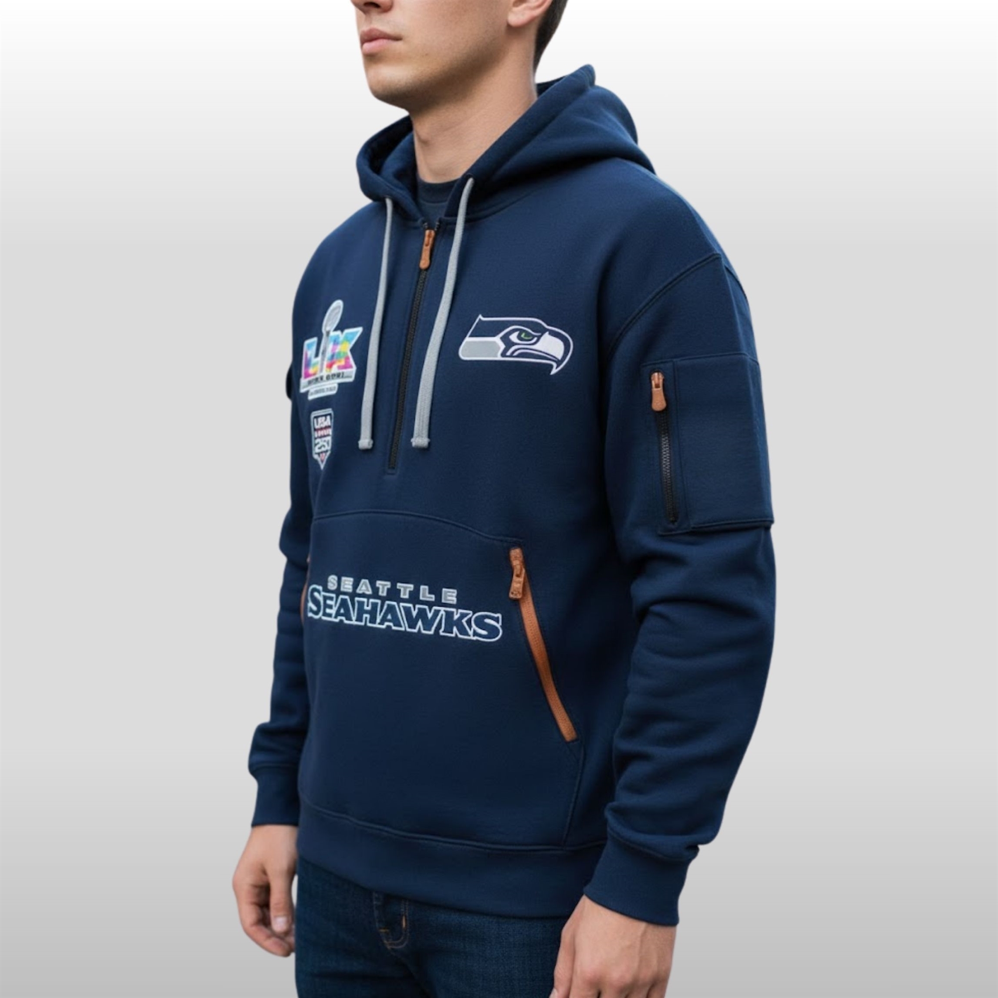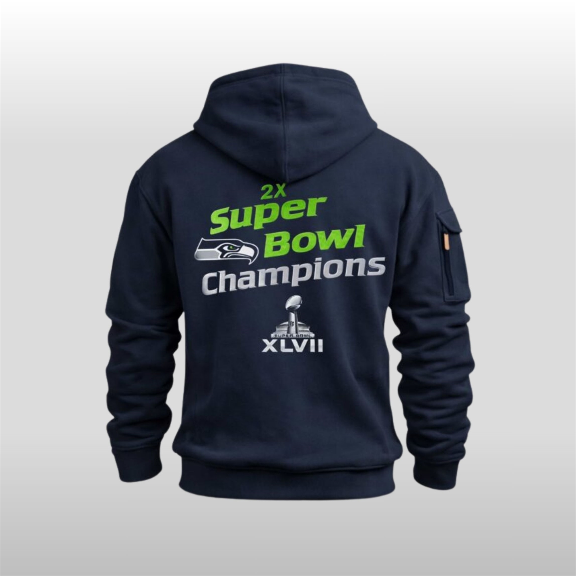 Furthermore, the hype surged as prominent figures in the Seattle music and tech scenes were spotted wearing the hoodie during winter events. The “Tactical-Chic” look resonated with a younger demographic, transforming a piece of sports memorabilia into a viral fashion statement. It represents the powerful intersection of local pride and the celebration of a national milestone.