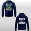 The reverse side is where the attitude truly peaks. With “BITCH I’M A SEAHAWK” printed in a clean, massive white serif font, the hoodie demands attention from every angle. It is a piece of wearable art that tells the story of a fan base that values grit, confidence, and the relentless pursuit of victory.