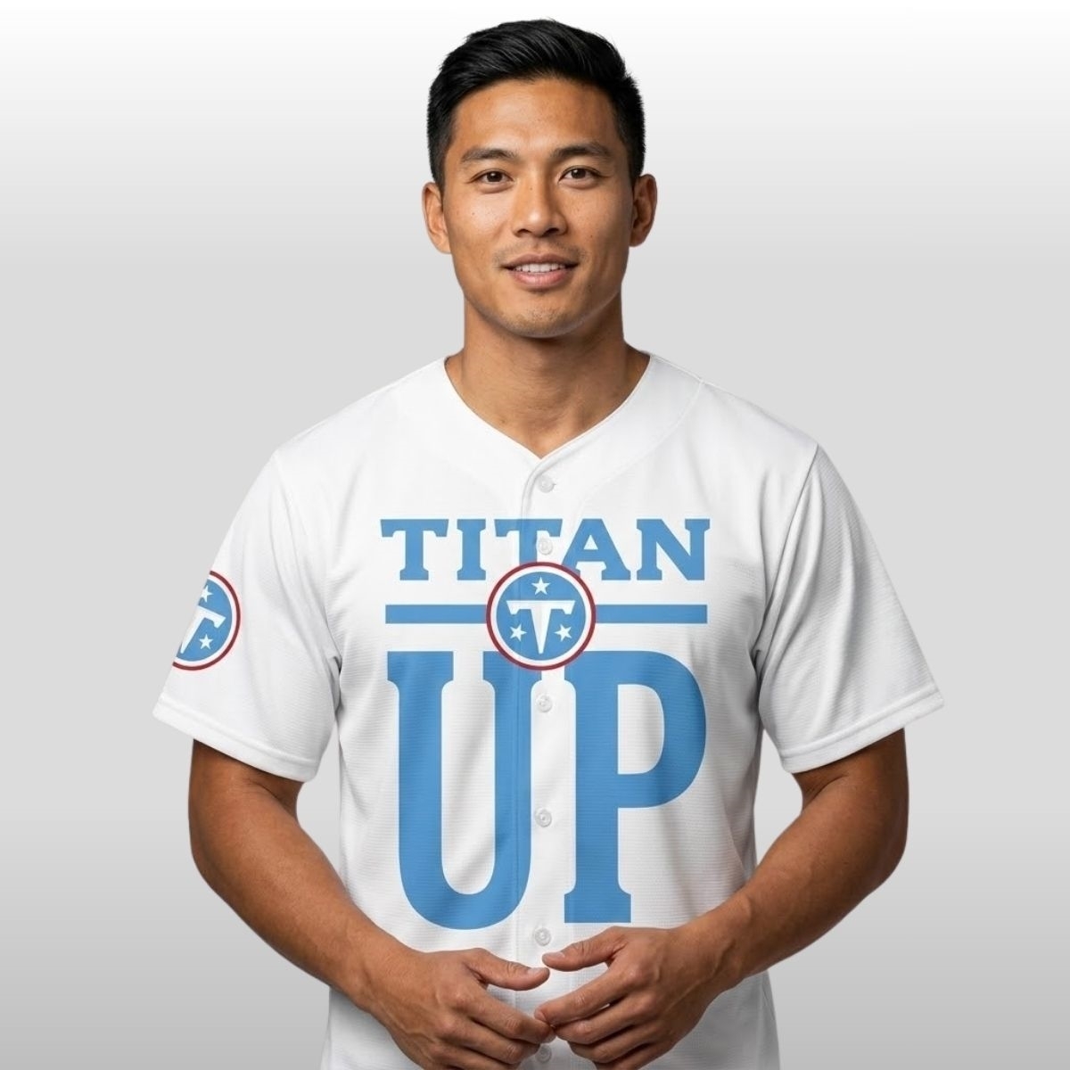 Beyond the aesthetics, this jersey represents a fresh start. The “New Chapter” designation reflects a forward-looking philosophy, making it a favorite for those who have stood by the team through every era. The combination of the timeless baseball cut with the contemporary “Titan Up” branding creates a unique look that resonates with younger fans and long-time followers alike. Whether layered over a hoodie for a crisp autumn look or worn open over a tee in the summer heat, it stands as a testament to a new era of style in Tennessee.