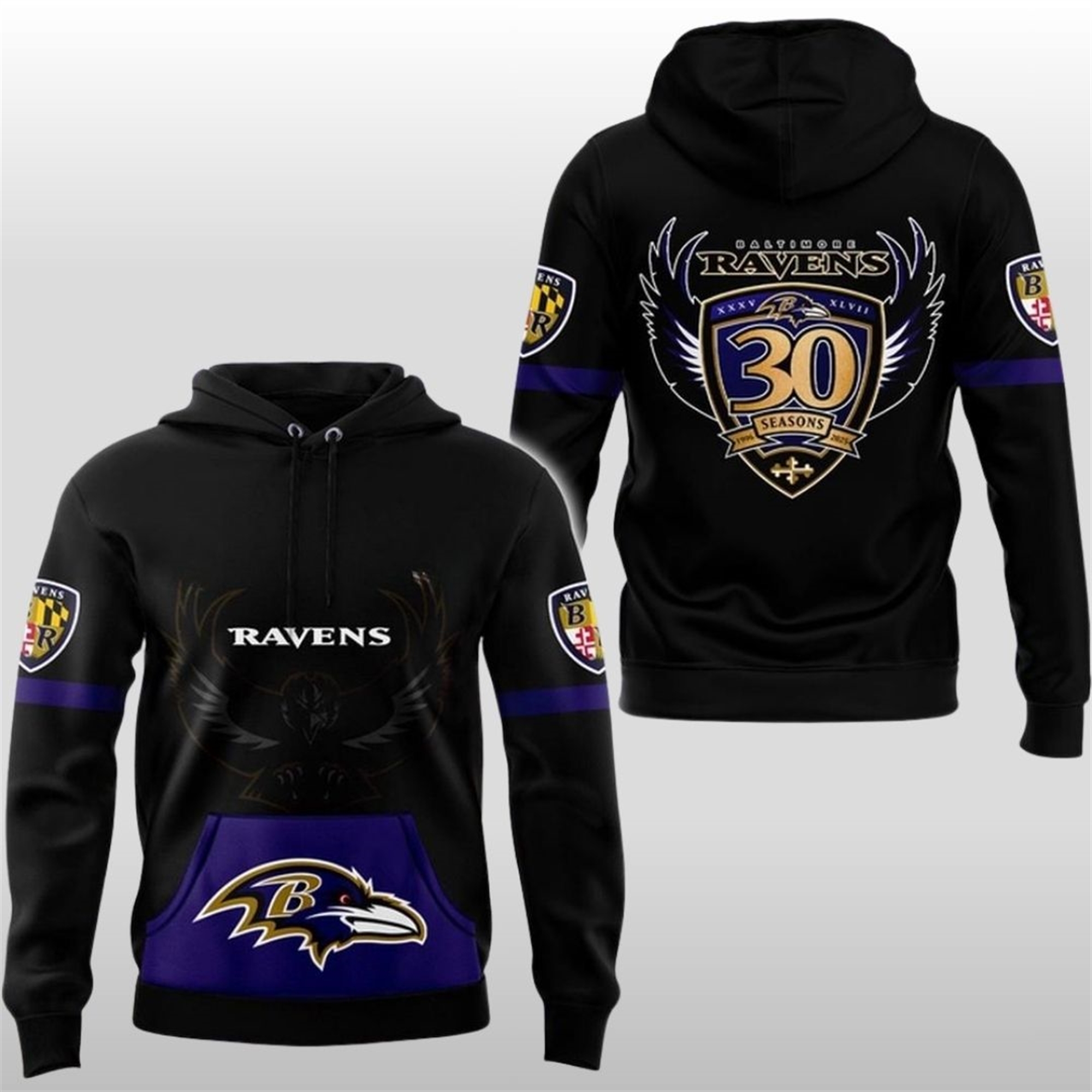 The Ultimate Fan Gear: Baltimore Ravens 30 Season 1996 -2026 Black Hoodie Arrives