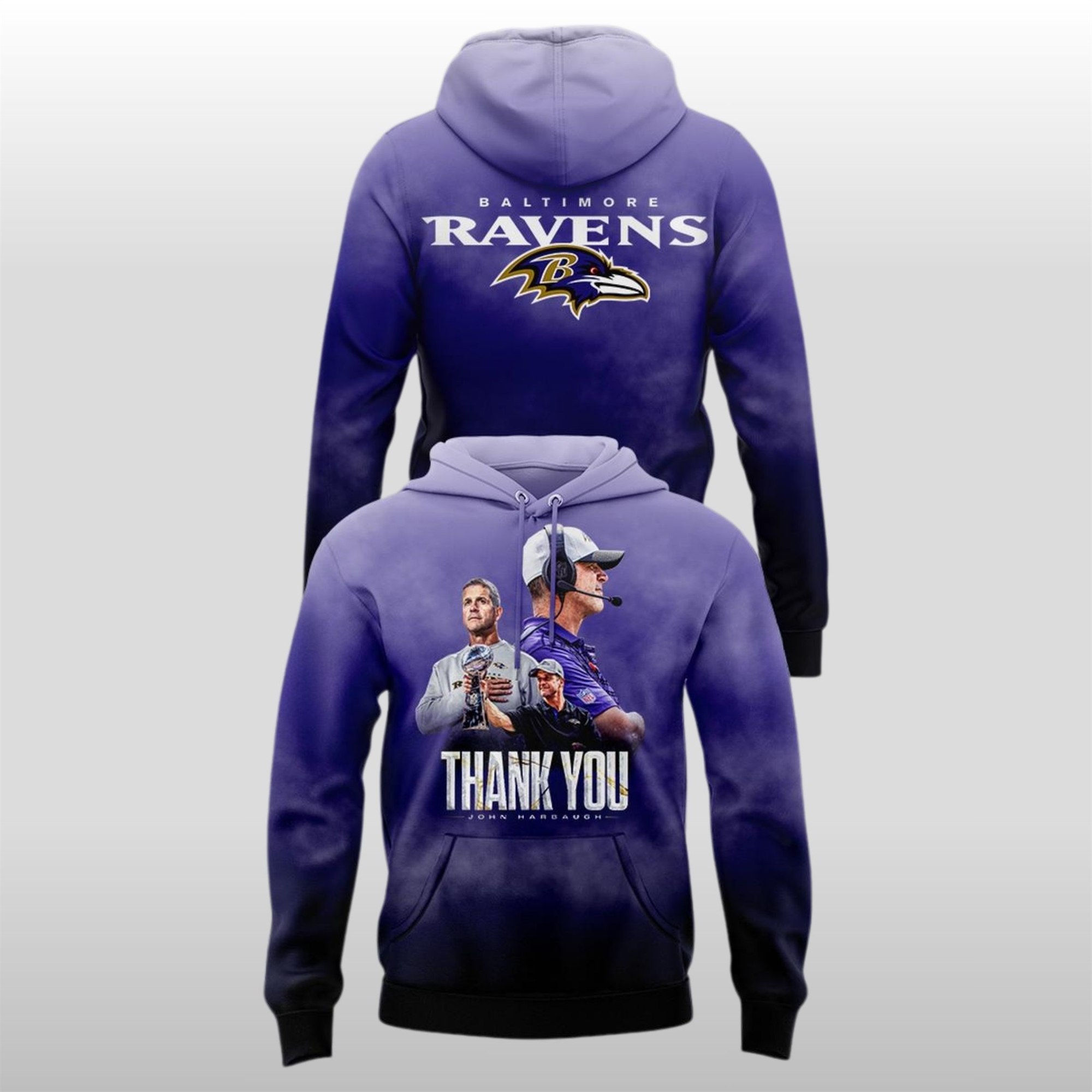 Baltimore Ravens Thank You Coach Harbaugh Ombre 2026 Hoodie – A Tribute to a Legend
