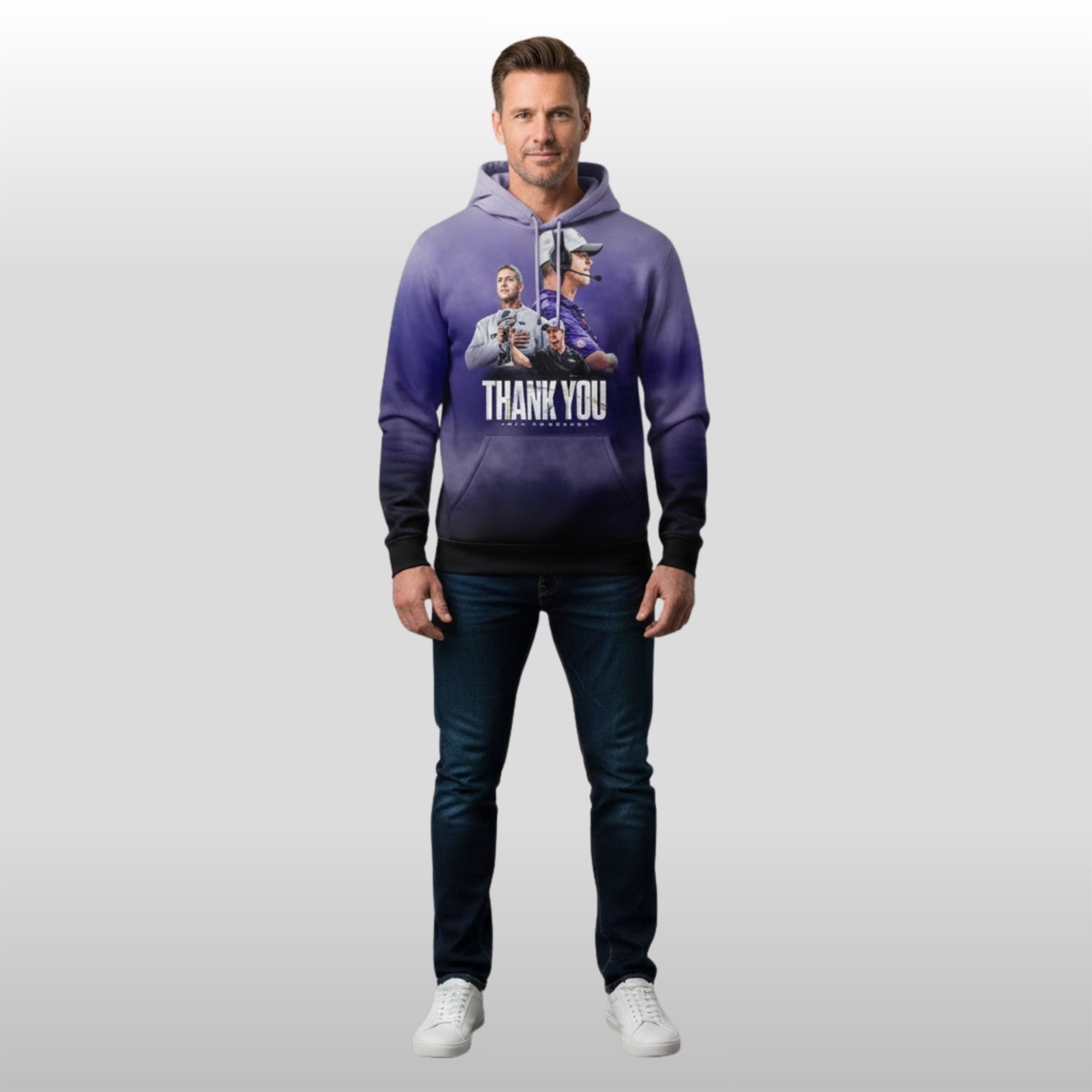 The Ravens Thank You Coach Harbaugh Ombre Hoodie Shirt isn’t just apparel; it’s a piece of history. The unique ombre sublimation process ensures the colors stay vibrant wash after wash, while the design captures the emotional connection between the city of Baltimore and its longtime leader. It’s the ultimate conversation starter for fans who have cheered through every AFC North title and playoff run.