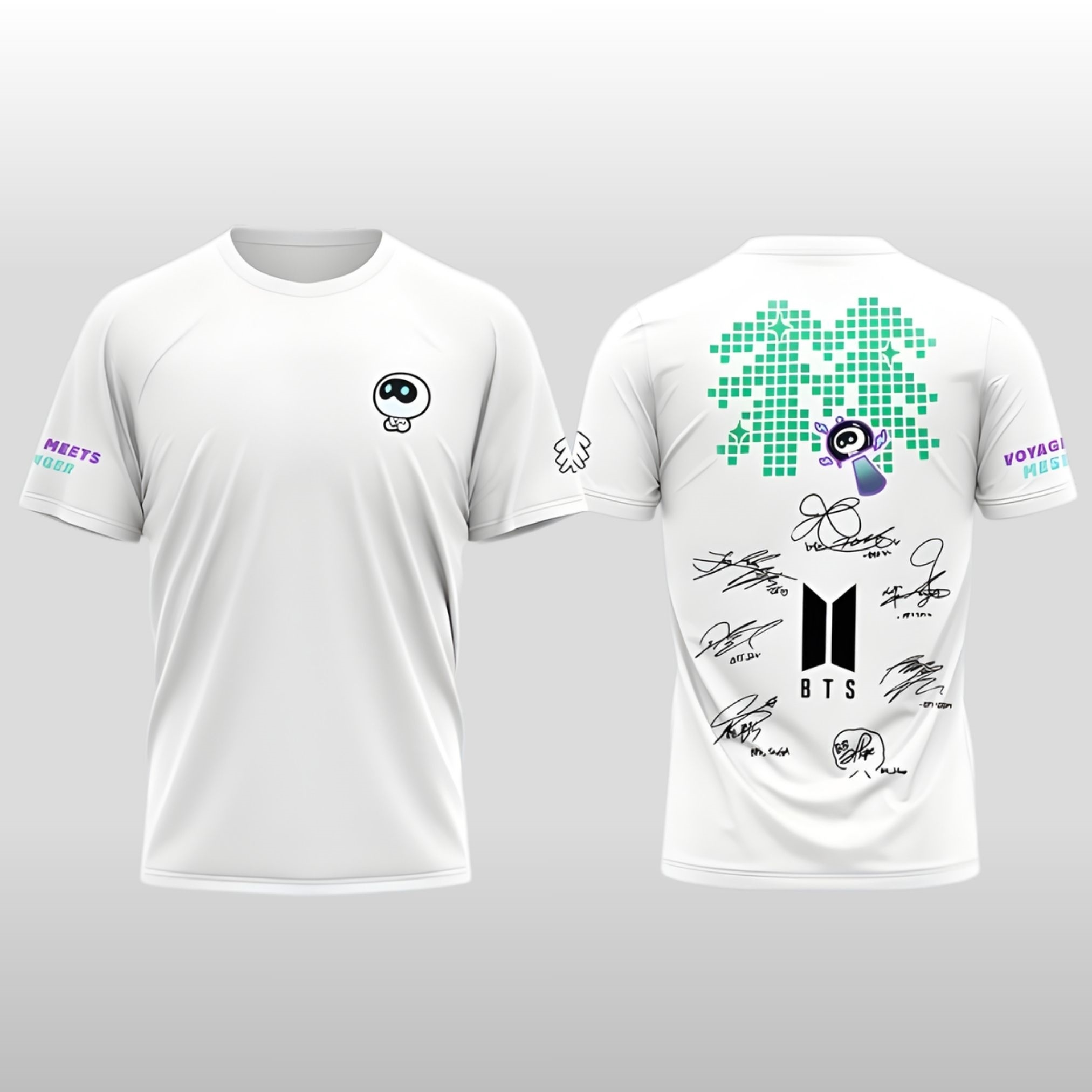 Celebrate the return of the kings with the BTS Comeback Spring World Tour 2026 Shirt, a premium piece of memorabilia designed for the ultimate fan experience. This BTS white tee features a minimalist front with a cute mascot, while the back showcases a stunning teal pixel-art “M” design, the iconic group logo, and the printed signatures of all seven members. Whether you’re in the front row or watching from home, this 2026 Spring Tour Commemorative Apparel is the perfect way to show your purple pride.