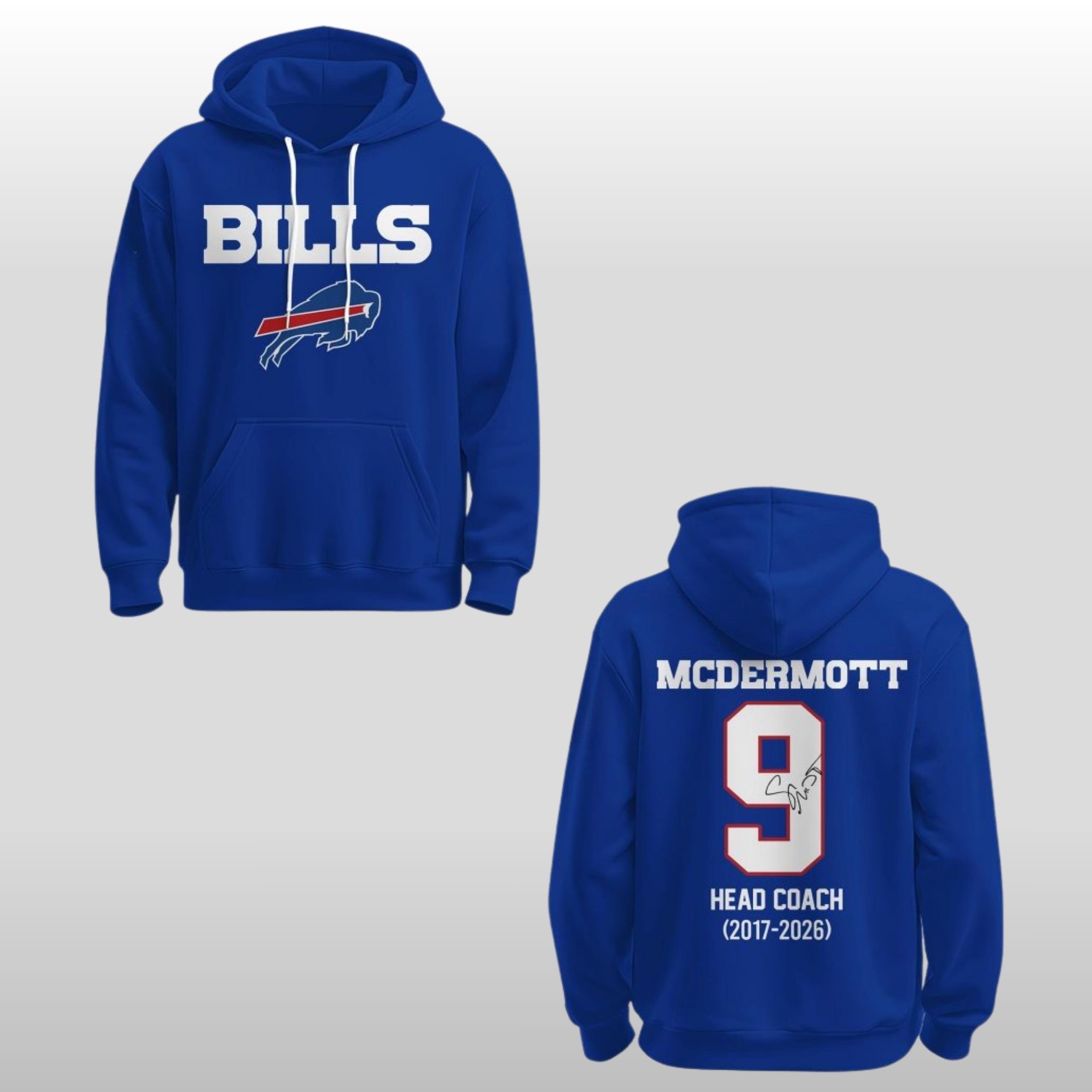 Whether you’re braving the lake-effect snow or grabbing a coffee on a Sunday morning, this hoodie ensures you’re representing the blue and red with pride. It celebrates the grit, the defense-first mentality, and the unwavering leadership that Sean McDermott brought to every single game. This is the ultimate piece for those who “Circle the Wagons” and believe in the power of a well-built culture.