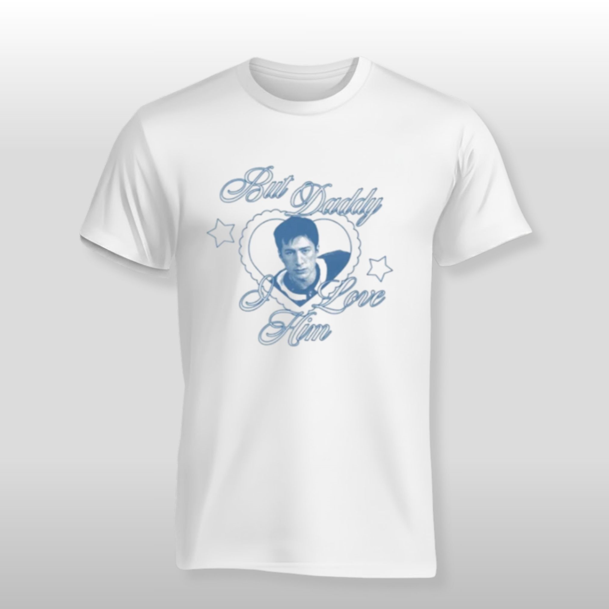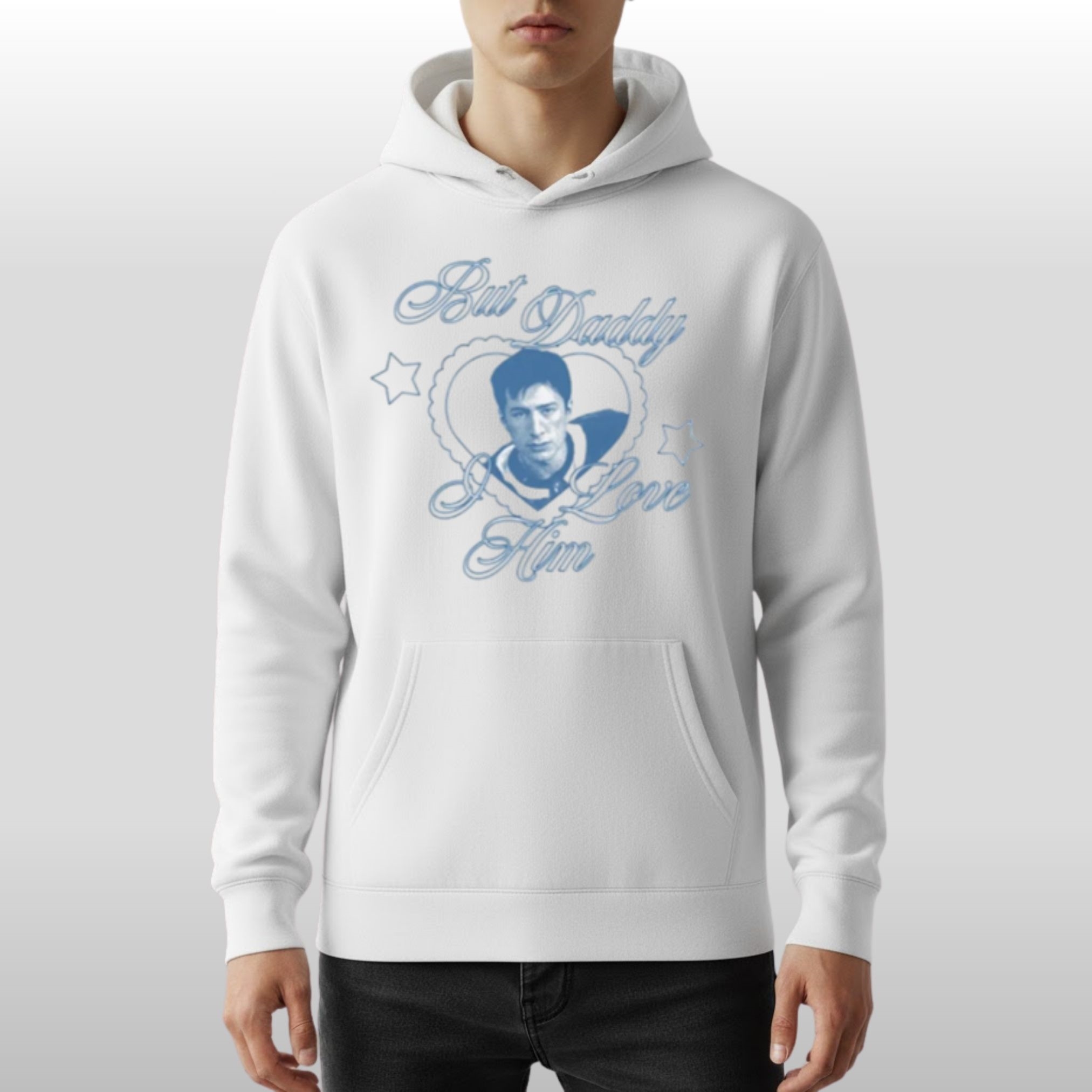 Step into the spotlight with the But Daddy I Love Him Hudson Hollander Shirt, a must-have for fans who live for the intersection of pop culture and athletic charm. This premium white tee features a stunning vintage-inspired graphic, centering a high-definition portrait of Hudson Hollander framed by a delicate, scalloped lace heart. The iconic phrase “But Daddy I Love Him” circles the image in a flowing, Y2K-style blue script, accented by whimsical stars that give it a nostalgic, dreamy vibe.