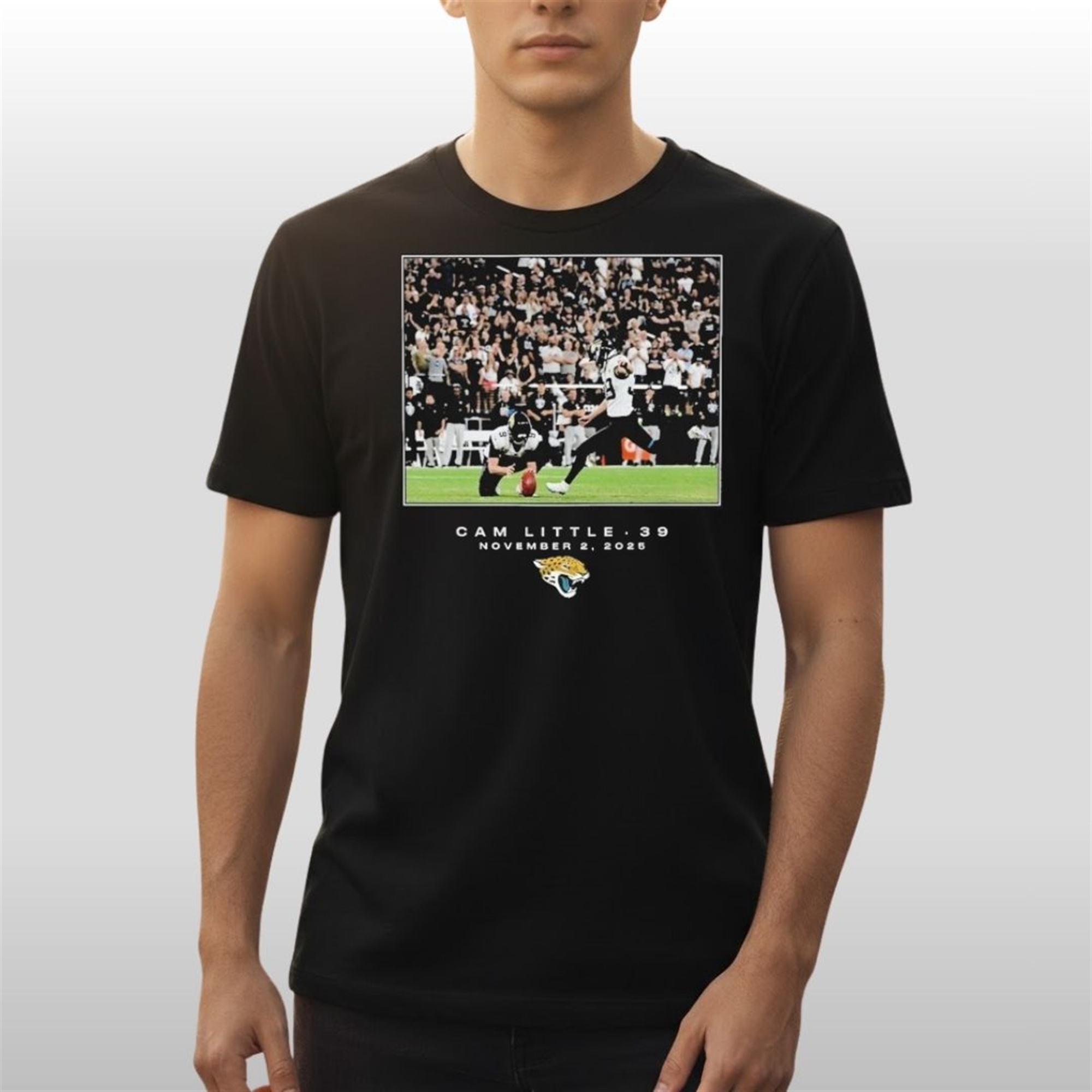 This shirt celebrates the extraordinary power, precision, and sheer clutch performance of Cam Little against the Las Vegas Raiders. It is a symbol of excitement, pride, and witnessing a legendary feat—a perfect tribute for every Jaguars supporter and football enthusiast who felt the adrenaline rush of that career-defining boot. Don’t miss out on securing this piece of contemporary sports history.
