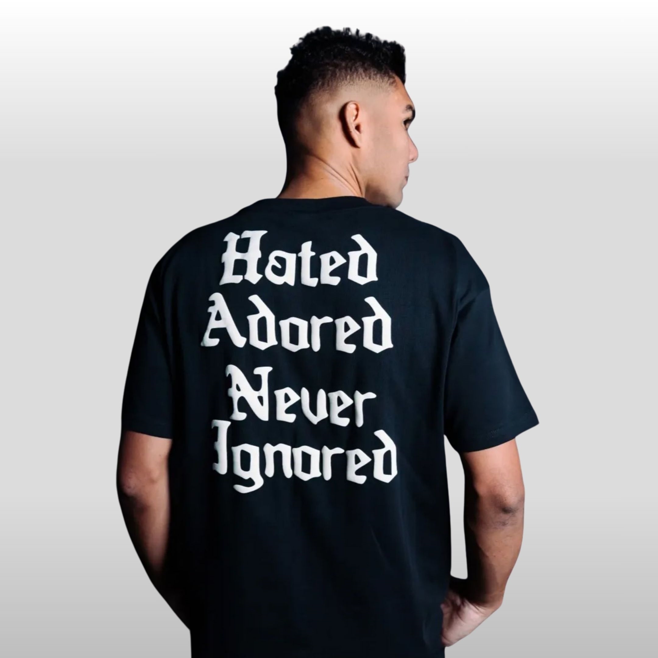 Crafted from soft, breathable cotton, this Casemiro tribute graphic tee captures the essence of a player who commands respect from teammates and rivals alike. The design centers on the duality of greatness—acknowledging the “Hate” from opponents, the “Adoration” from the home crowd, and the undeniable fact that his impact is “Never Ignored.”