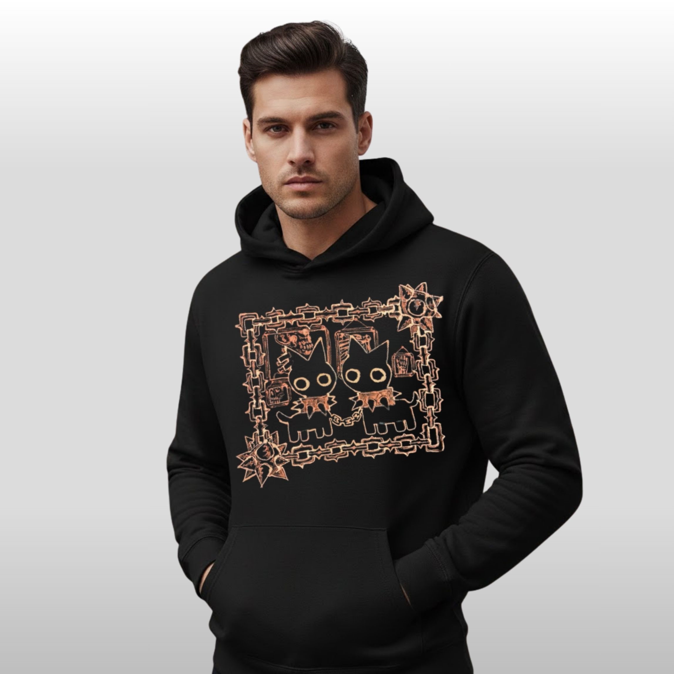 Are you tired of bland, conventional fashion? Do you seek a statement piece that merges edgy, dark aesthetics with an endearing feline motif? Get ready to redefine your wardrobe with a design that captures attention and sparks conversation.