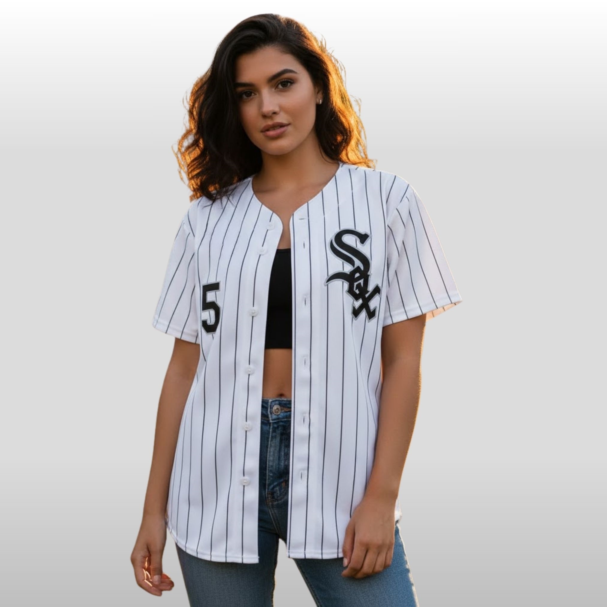 The Chicago White Sox Munetaka Murakami 2025-2026 Baseball Jersey represents the pinnacle of modern fan gear, blending the historic aesthetic of the South Side with the electrifying energy of a global superstar. This jersey features the classic white pinstripe design that has defined Chicago baseball for generations. On the front, the iconic “Sox” logo sits proudly on the chest, accompanied by the player’s number “5.”