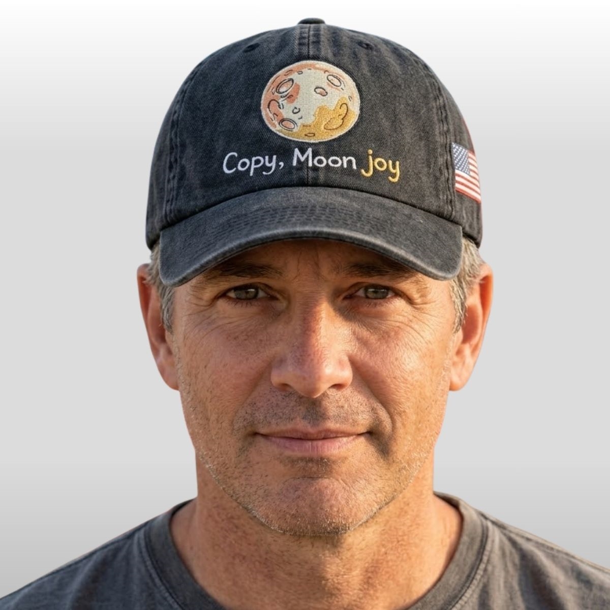 The design utilizes a vintage-inspired, distressed aesthetic to mirror the rugged nature of space exploration. The “Copy, Moon joy” lettering is rendered in a clean, sans-serif font with a pop of yellow, mimicking the communication style of mission control transcripts where technical confirmation meets genuine excitement. This balance of professional grit and heartfelt inspiration makes the accessory a standout piece for anyone captivated by the stars. It serves as a reminder that every mission is fueled by both complex mathematics and the simple, universal wonder of looking up at the night sky.